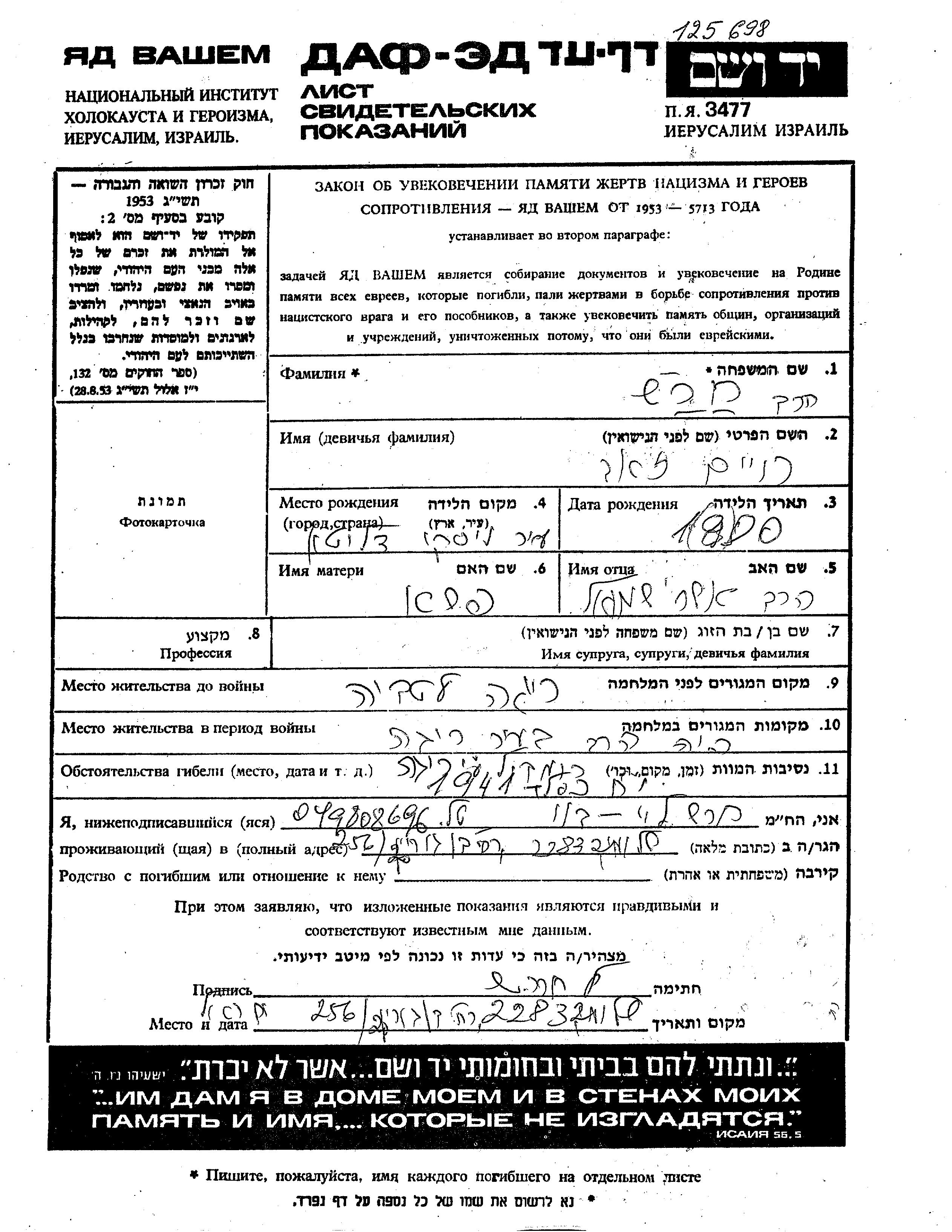 Zeev Khaim Kharash was born in Viski, Latvia, 1880 to Asher Shmuel and Pesa. He was a rabbi and married to Rakhel. Prior to WWII he lived in Riga, Latvia. During the war he was in Riga, Latvia. Zeev Khaim was murdered in the Shoah. Place of death: Rumbuli, Latvia, 08/12/1941.