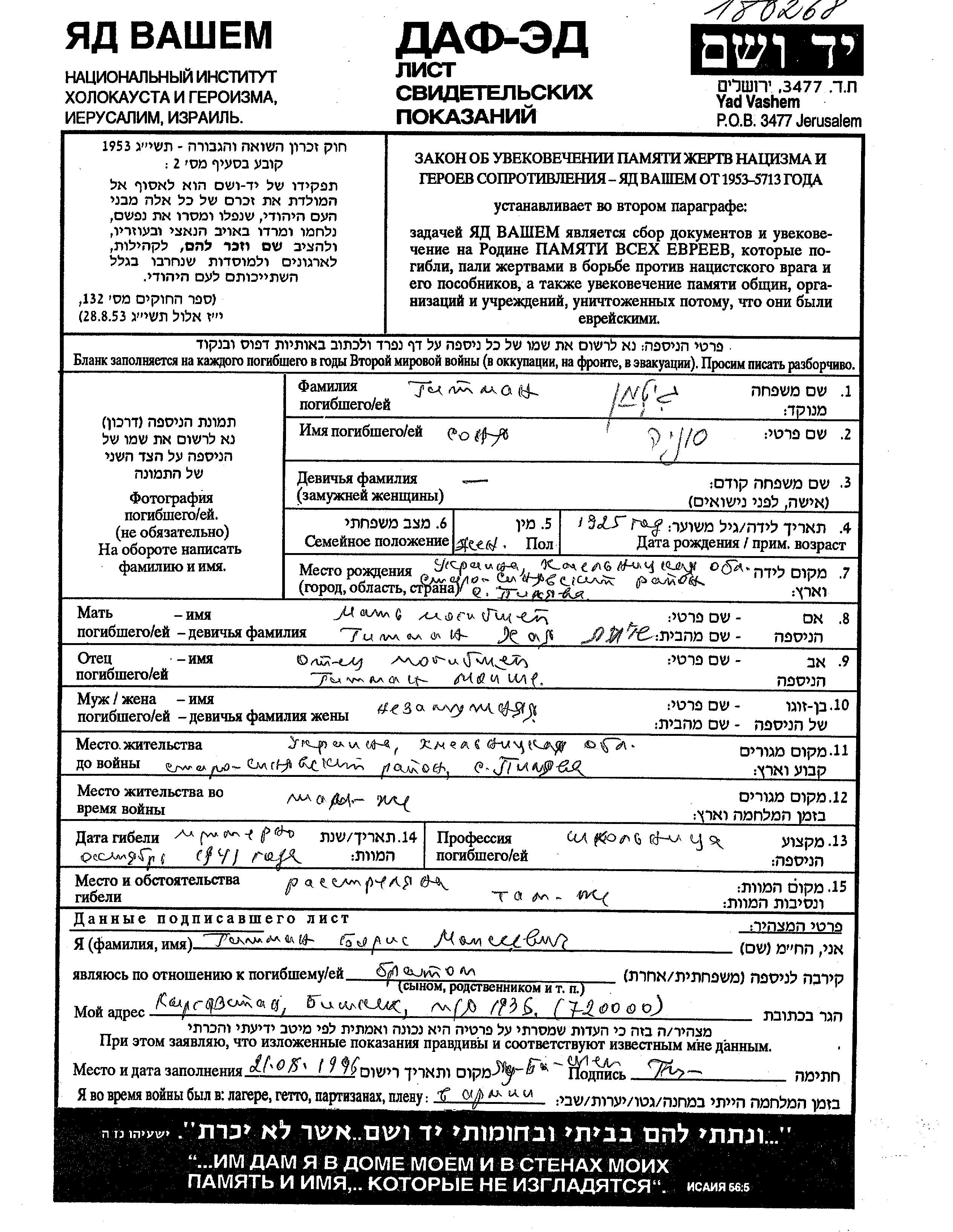 Yad Vashem - Pages of Testimony Names Memorial Collection