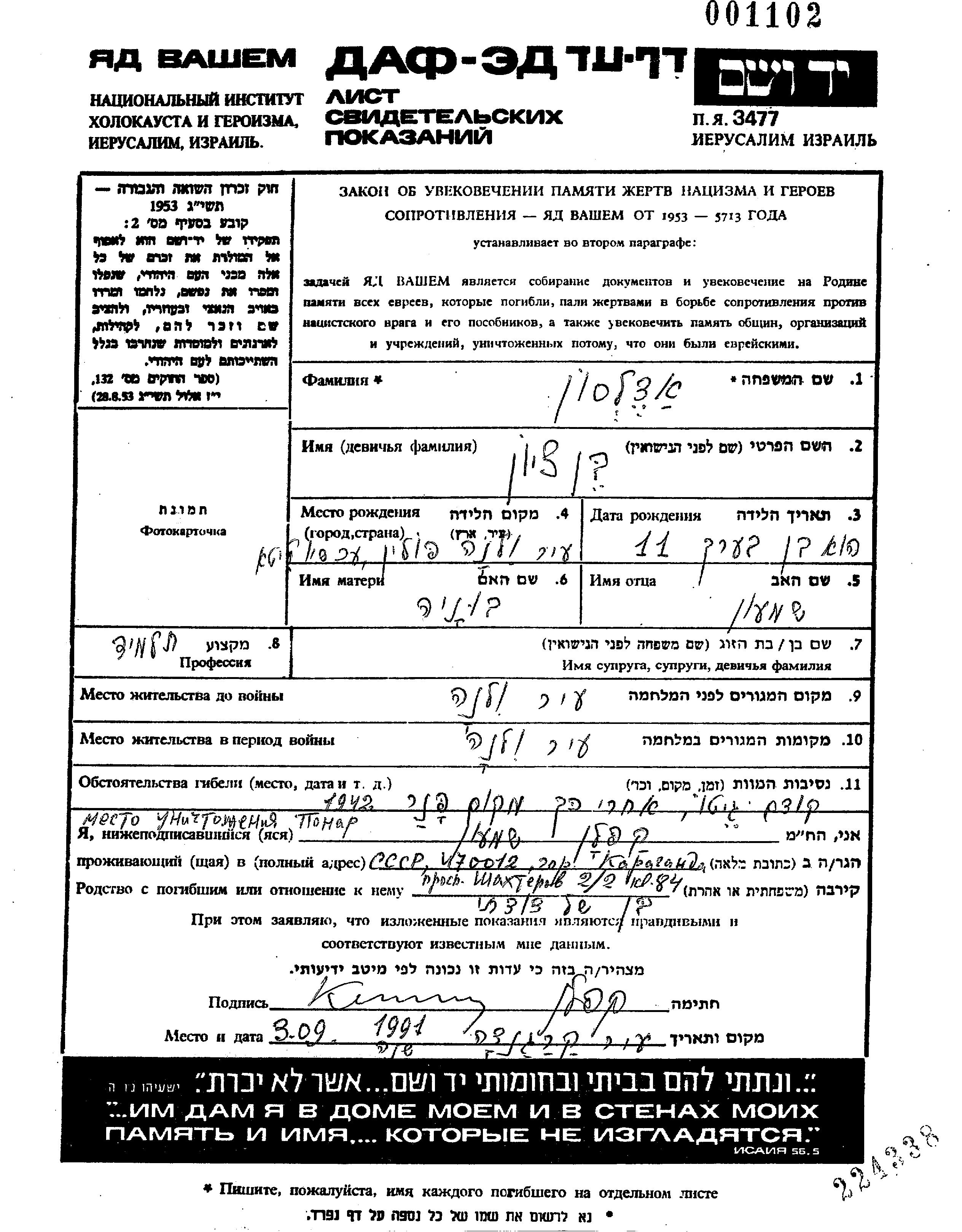 Yad Vashem - Pages of Testimony Names Memorial Collection