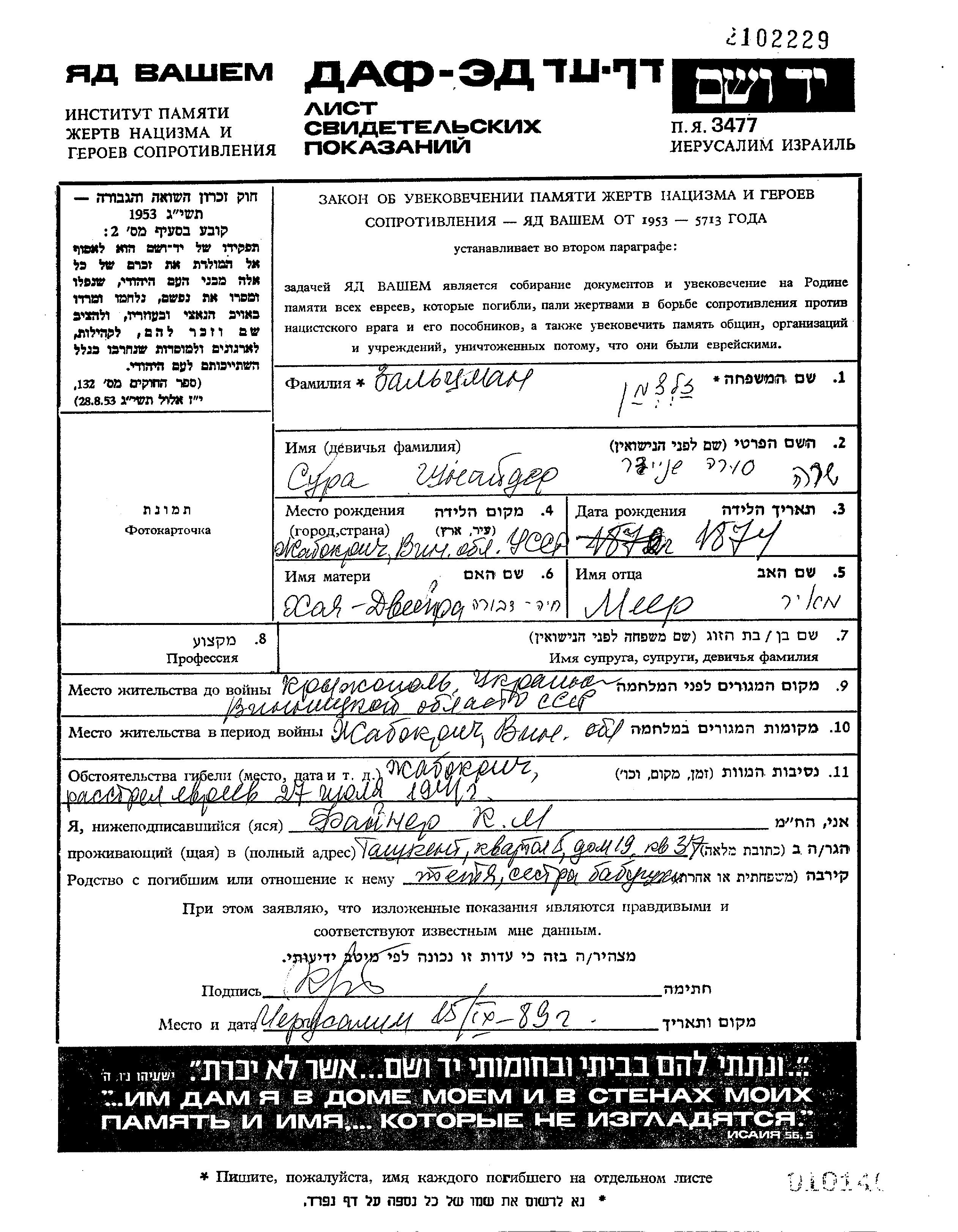Yad Vashem - Pages of Testimony Names Memorial Collection