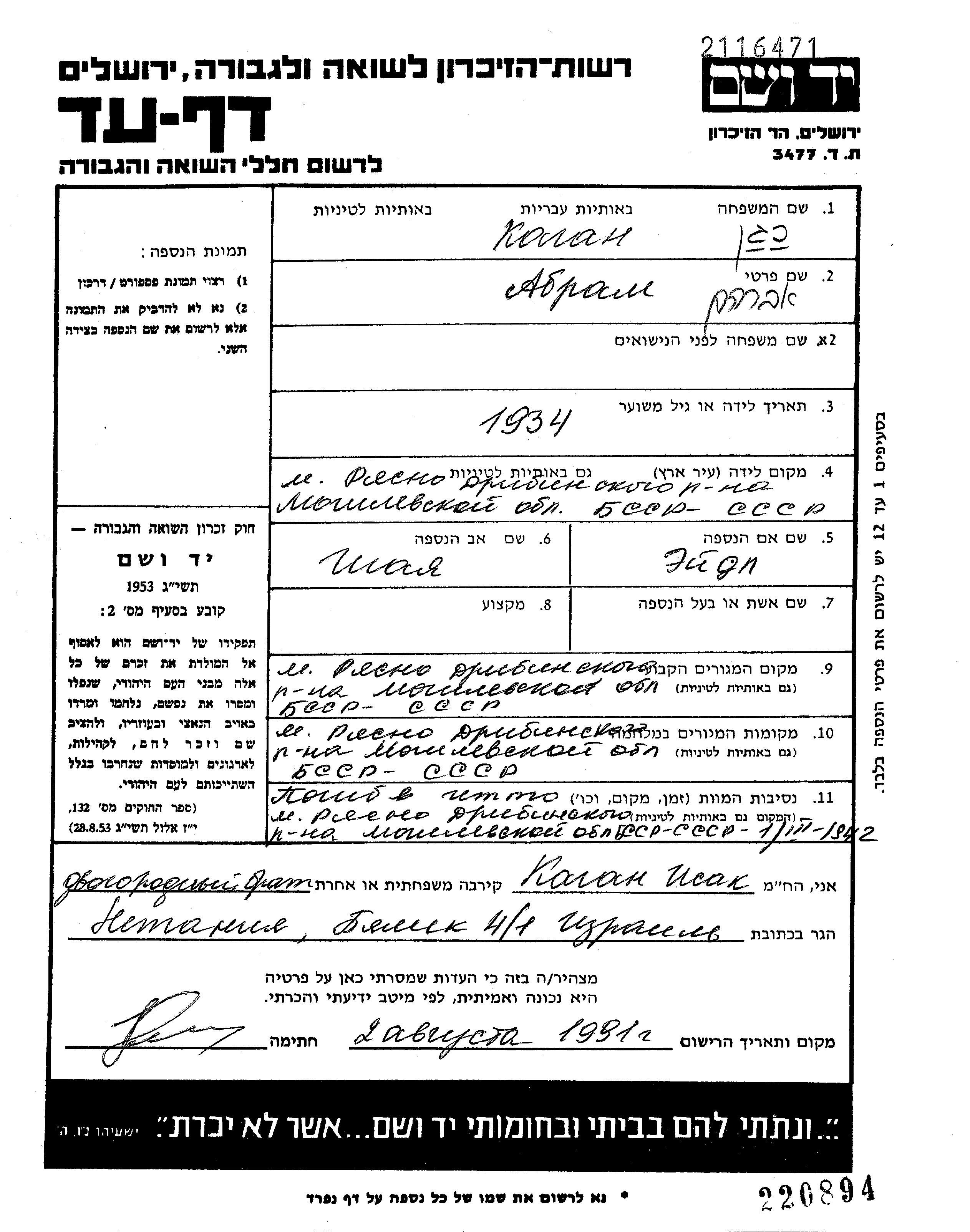 Search by last name of the submitter of the Page of Testimony, including diminutives or nicknames