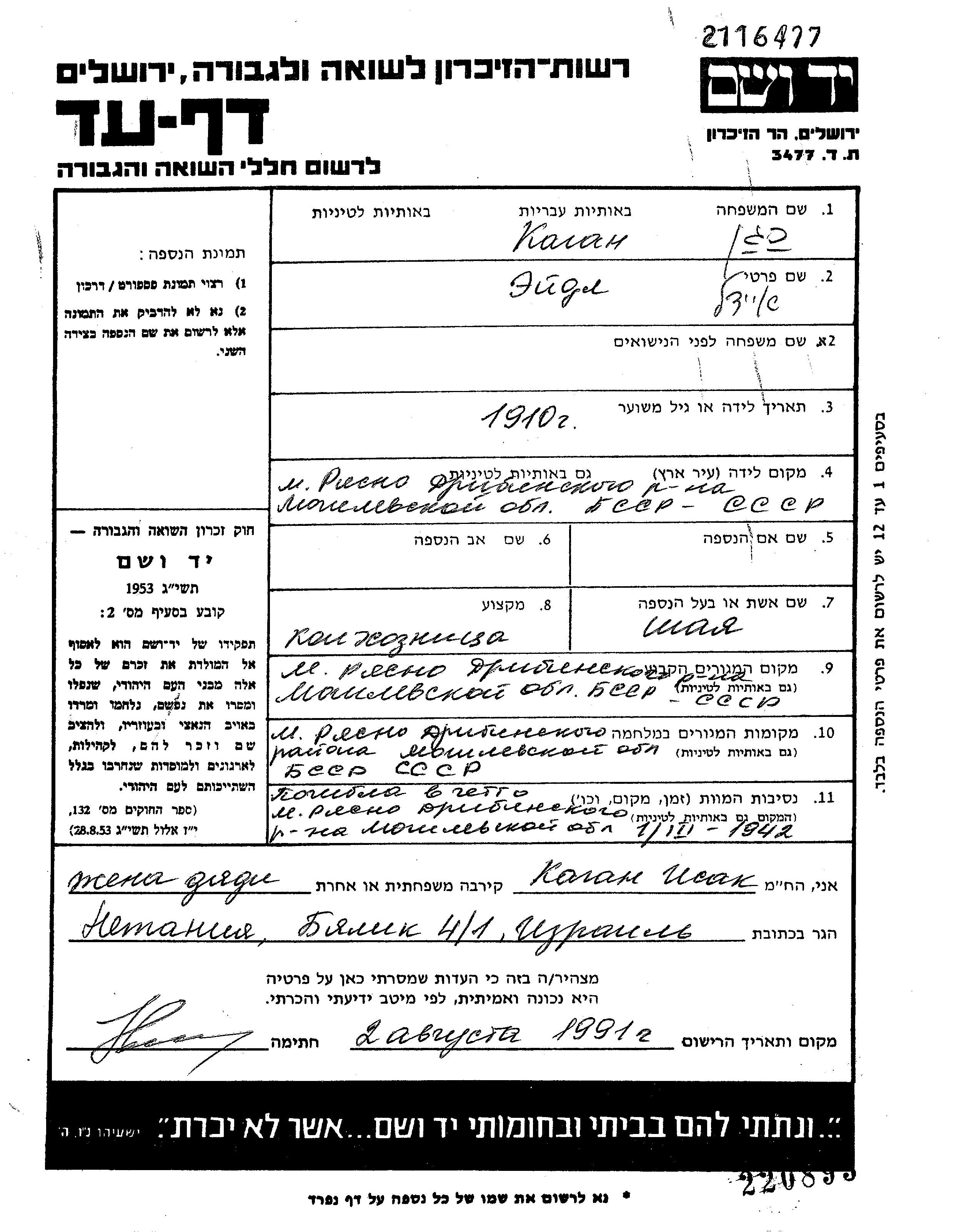 Yad Vashem - Pages of Testimony Names Memorial Collection
