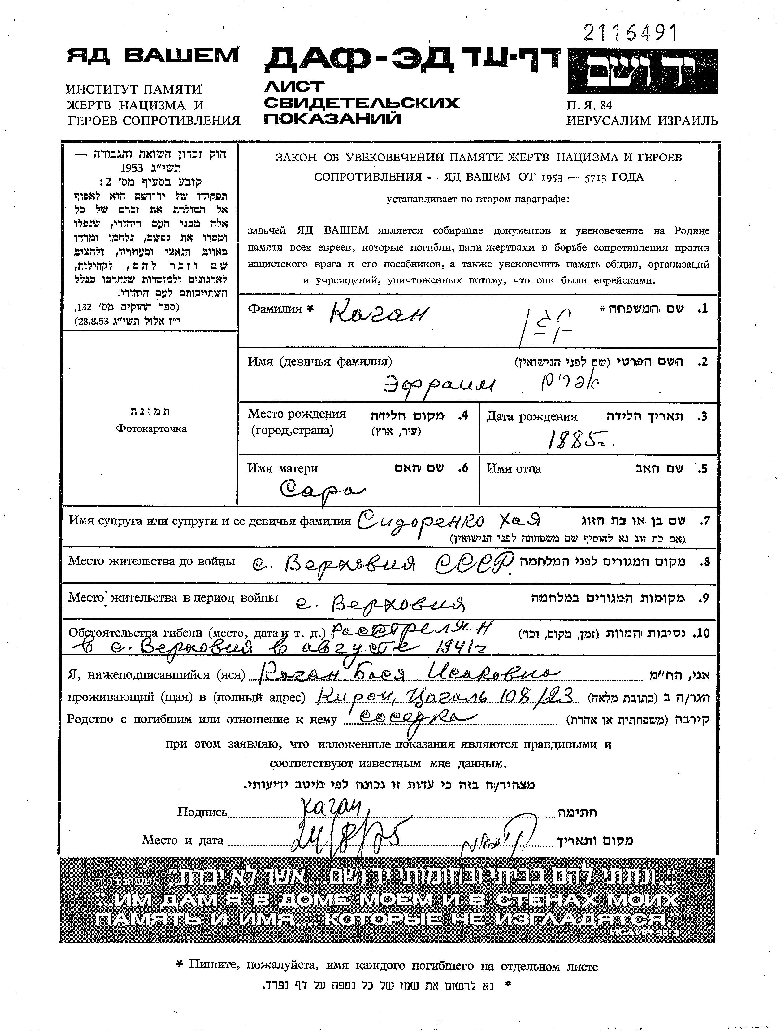 Search by last name of the submitter of the Page of Testimony, including diminutives or nicknames