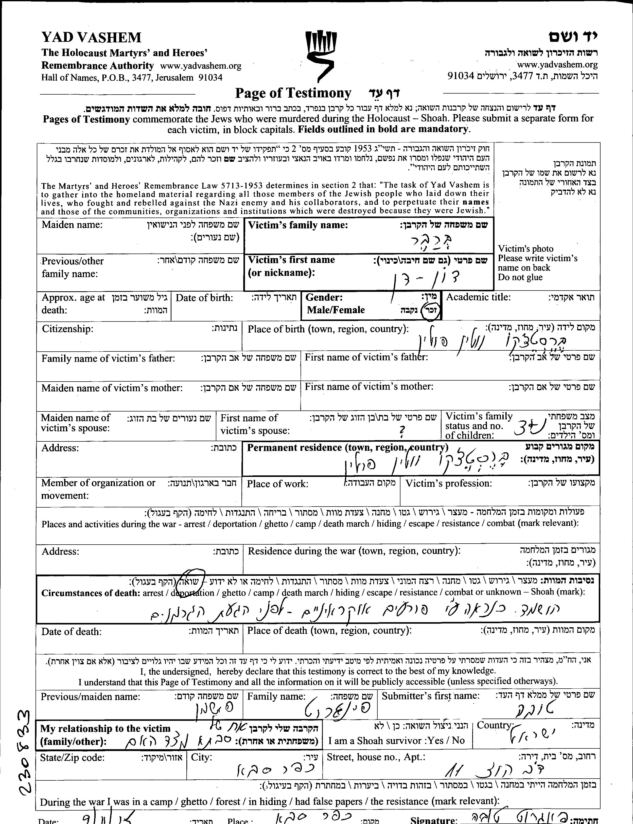 Yad Vashem - Pages of Testimony Names Memorial Collection