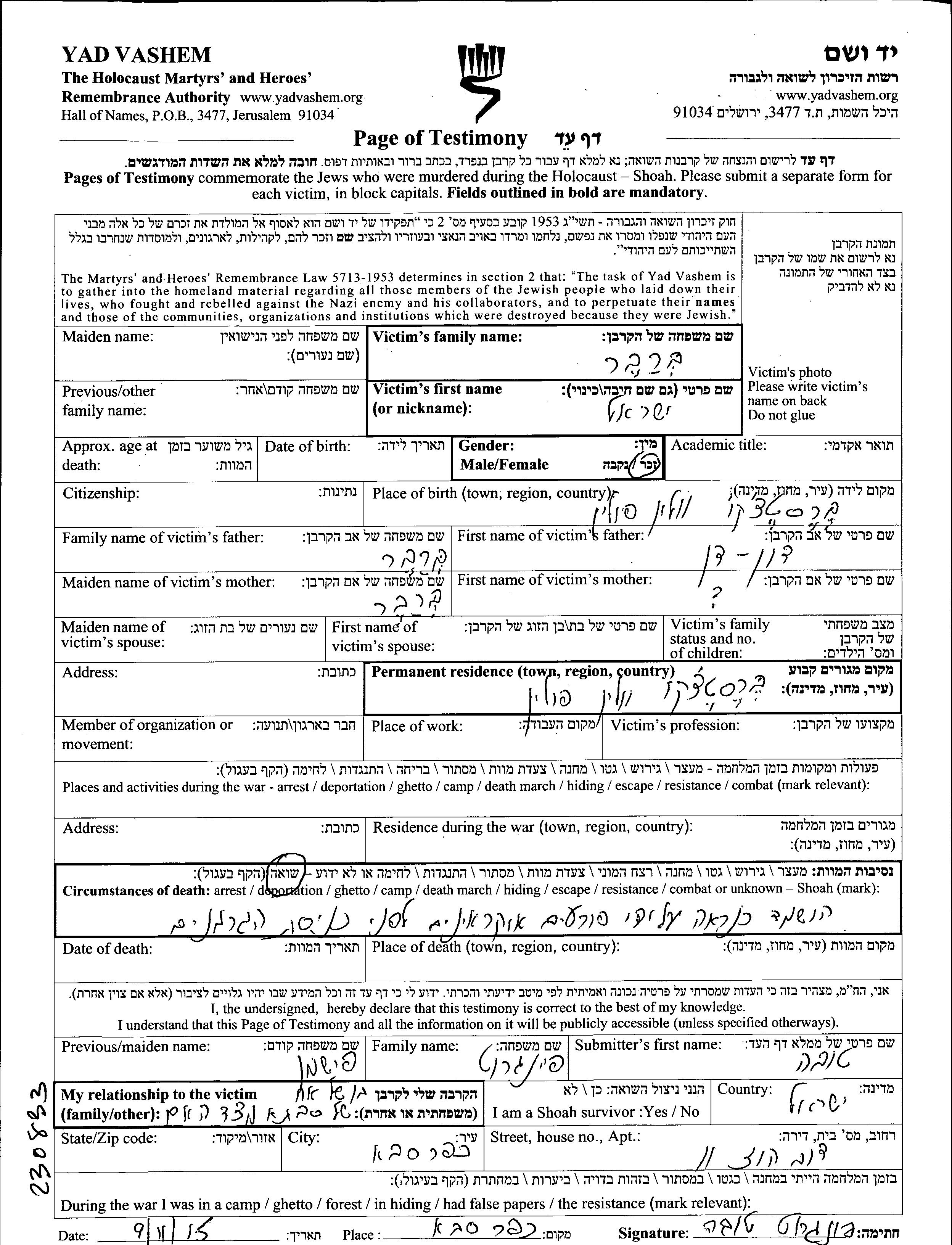 Yad Vashem - Pages of Testimony Names Memorial Collection