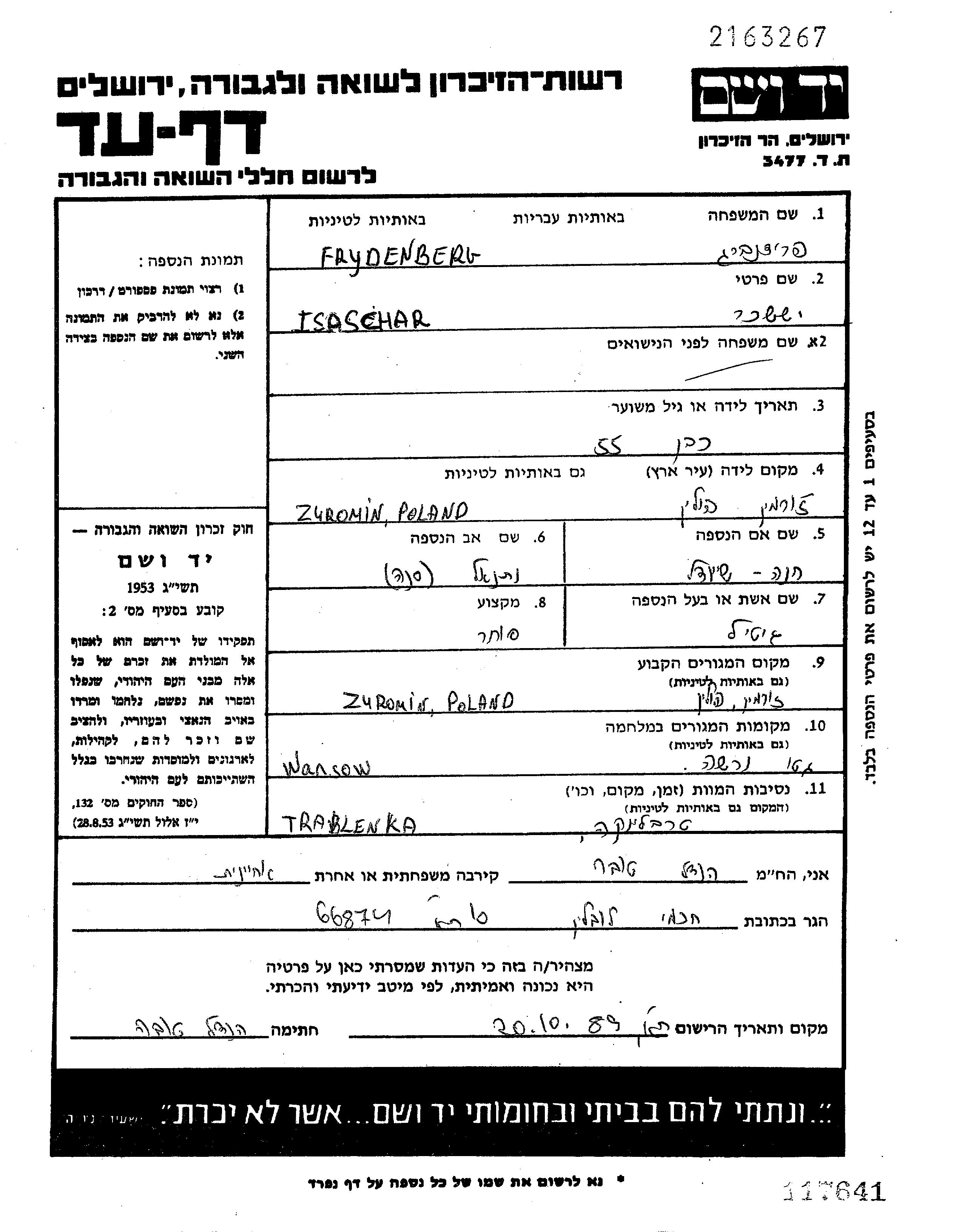 Frydenberg Isaschar Zuromin, Poland Page of Testimony