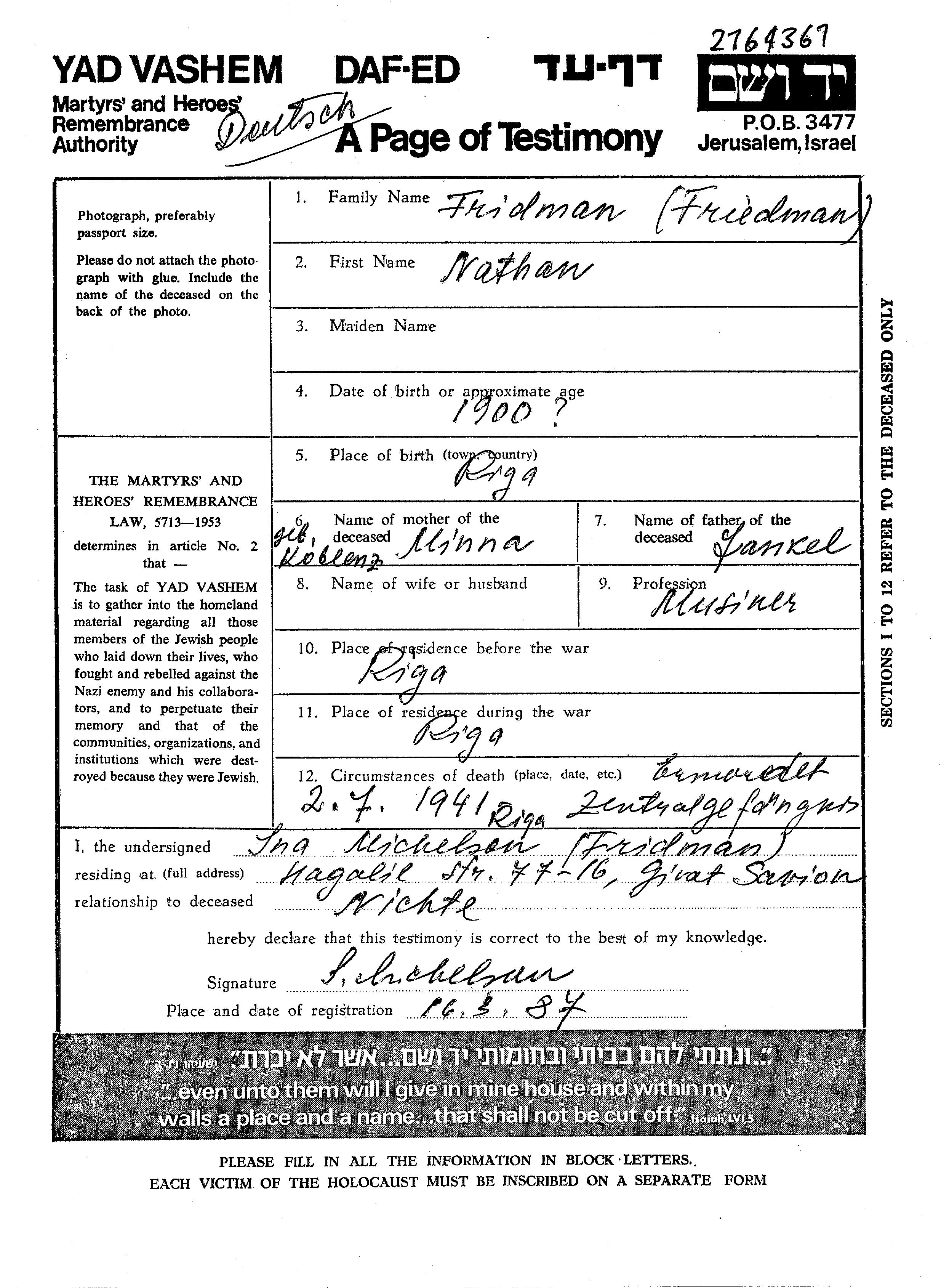 Search by last name of the submitter of the Page of Testimony, including diminutives or nicknames