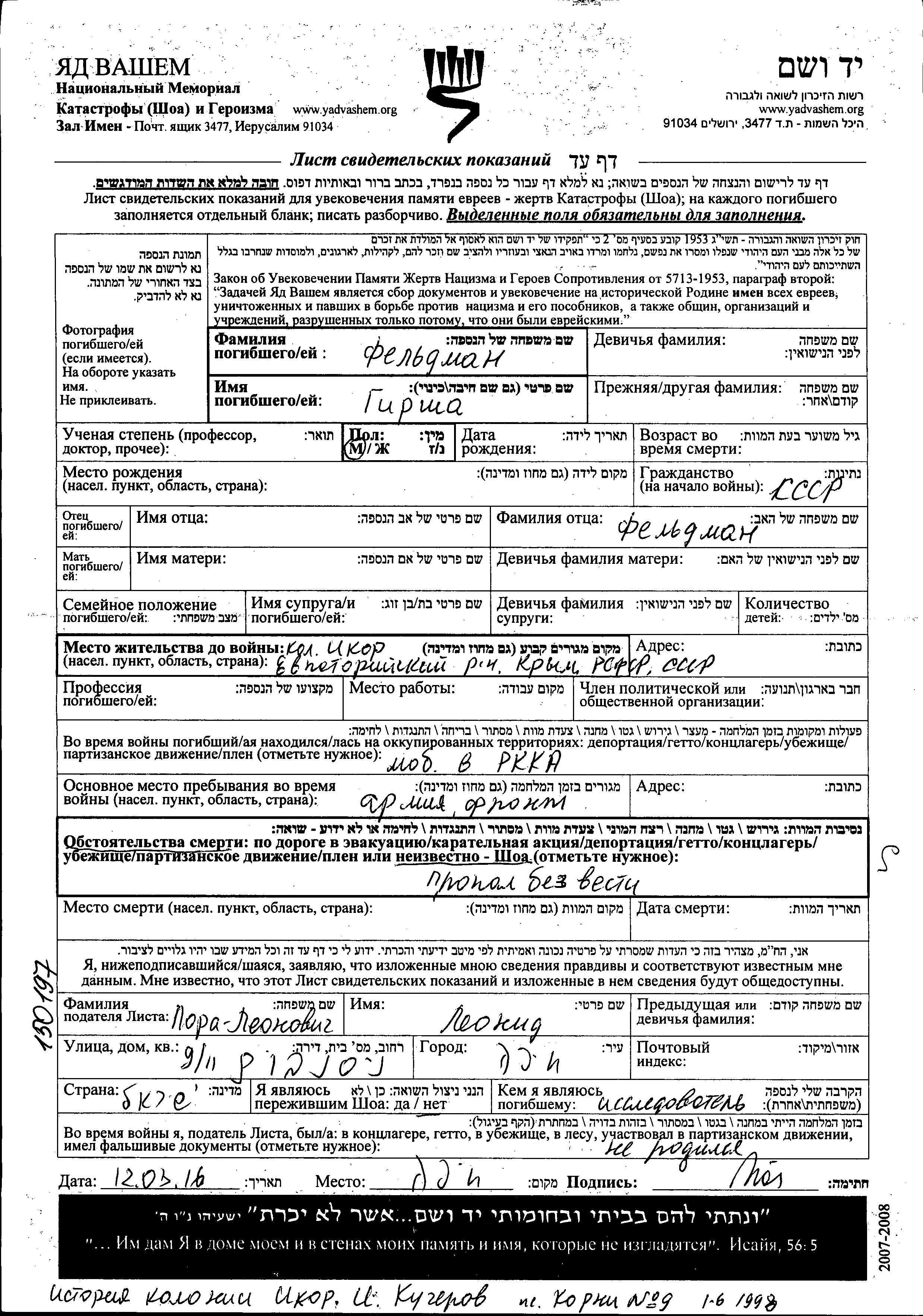 Yad Vashem - Pages of Testimony Names Memorial Collection