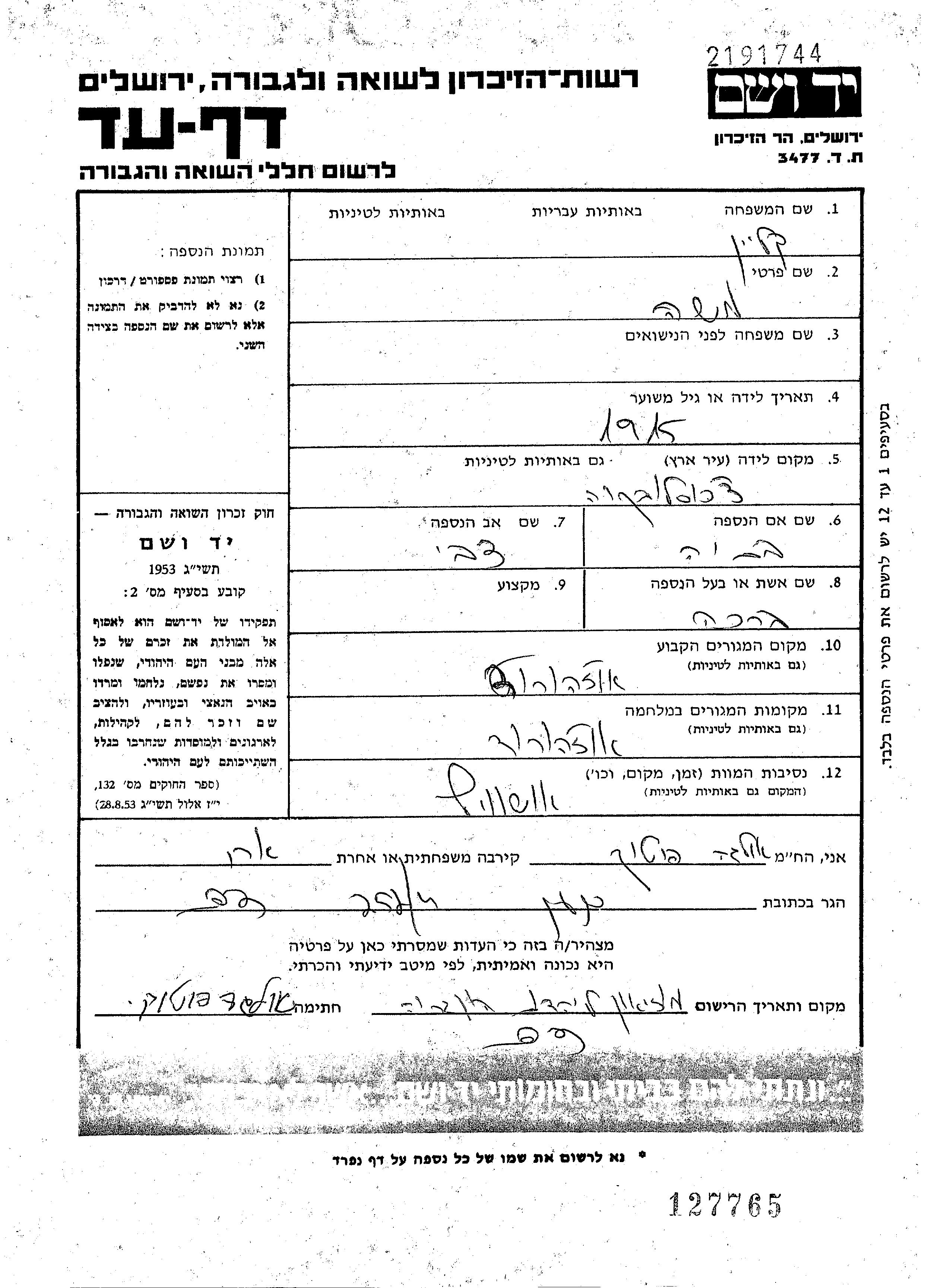 Yad Vashem - Pages of Testimony Names Memorial Collection