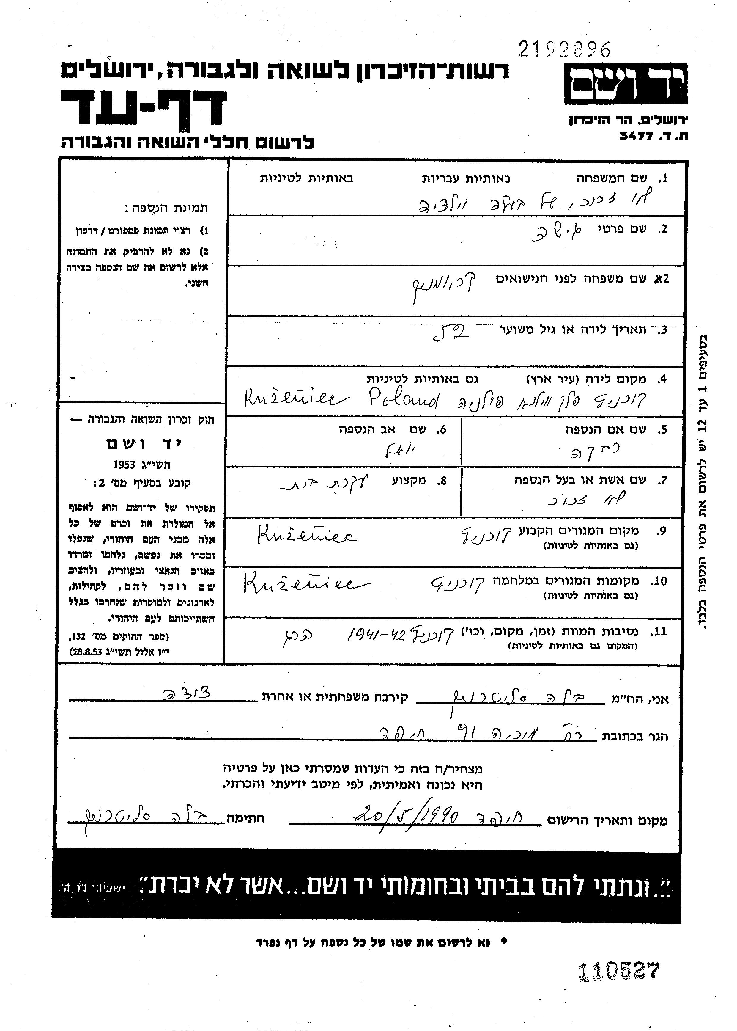 Yad Vashem - Pages of Testimony Names Memorial Collection