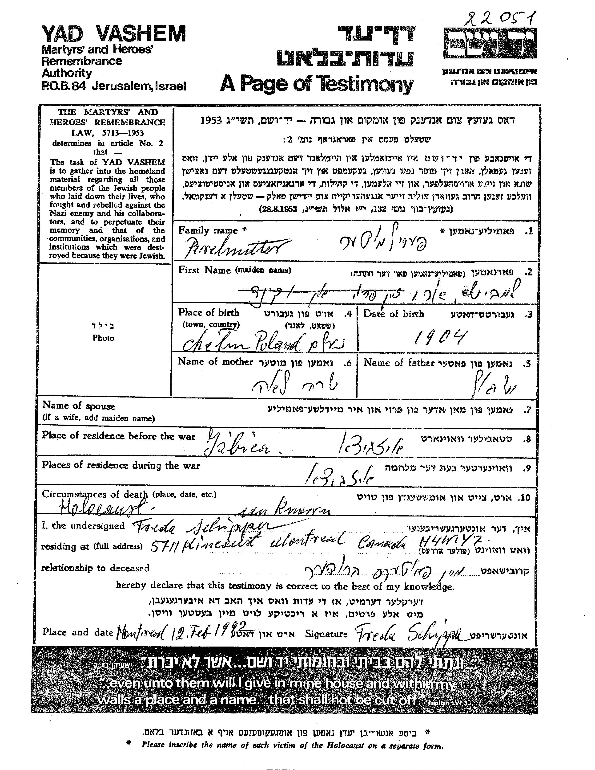 Yad Vashem - Pages of Testimony Names Memorial Collection