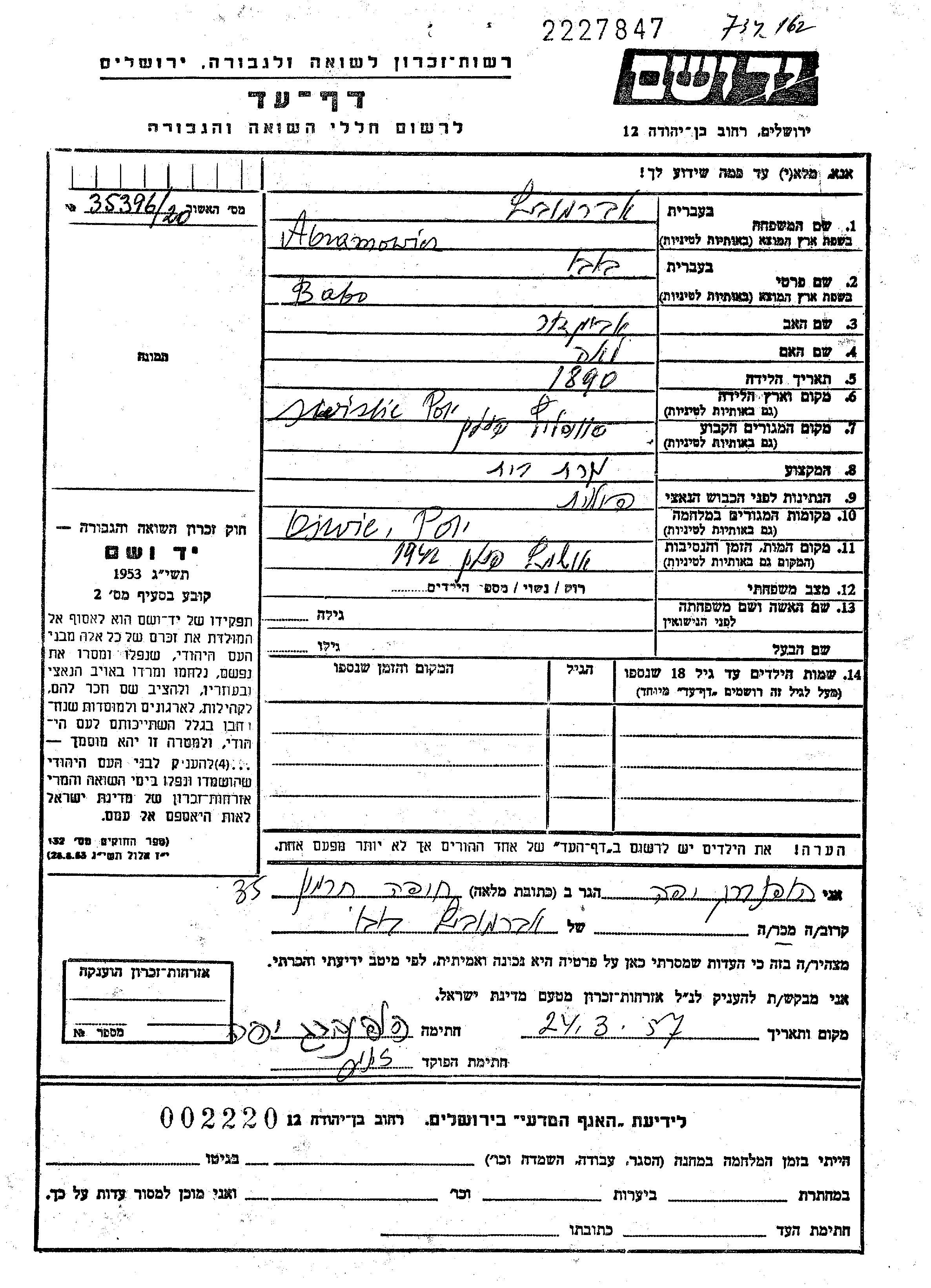 Yad Vashem - Pages of Testimony Names Memorial Collection