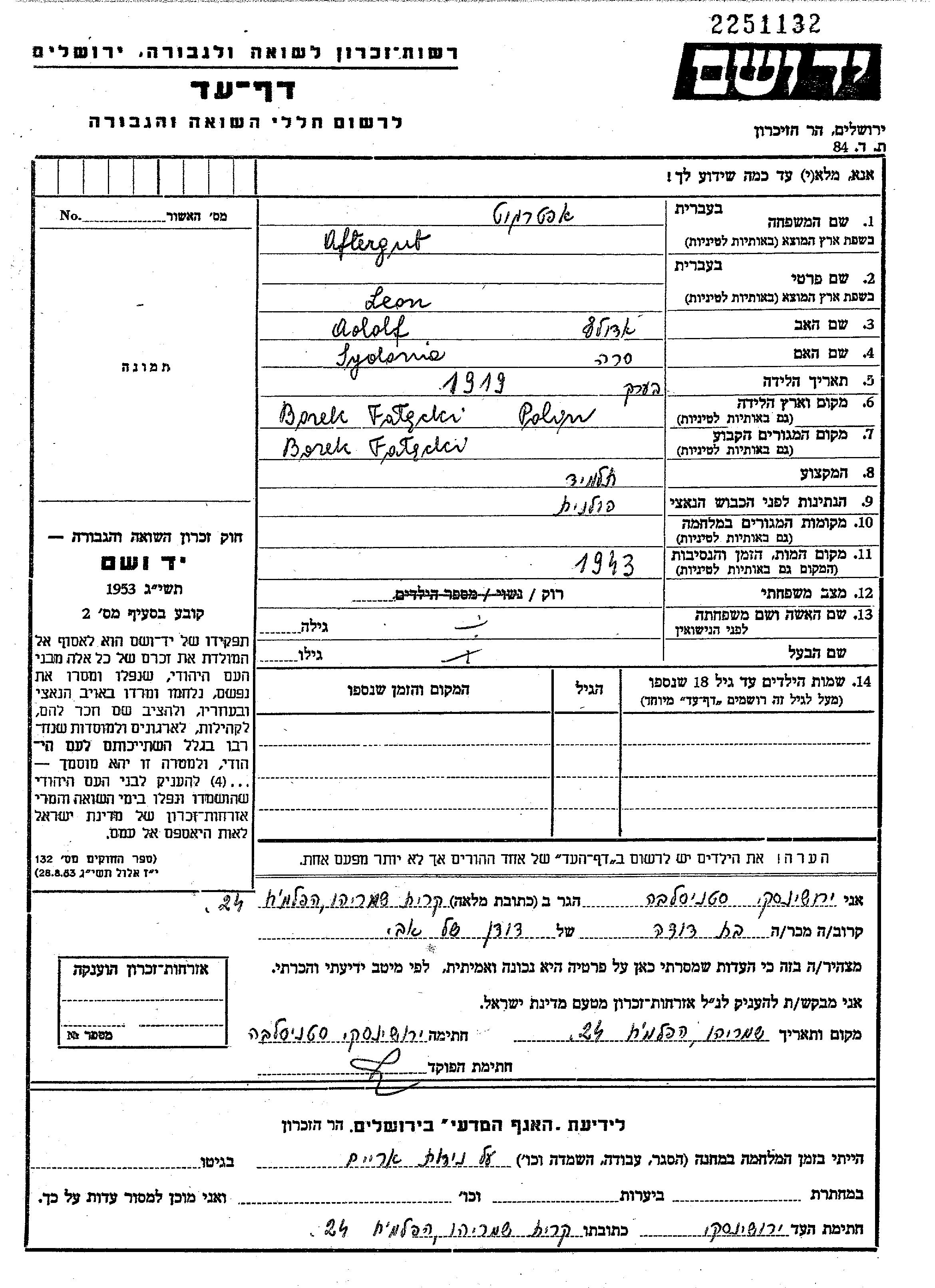 Aftergut Leon 1919 Borek Falecki, Poland Page of Testimony