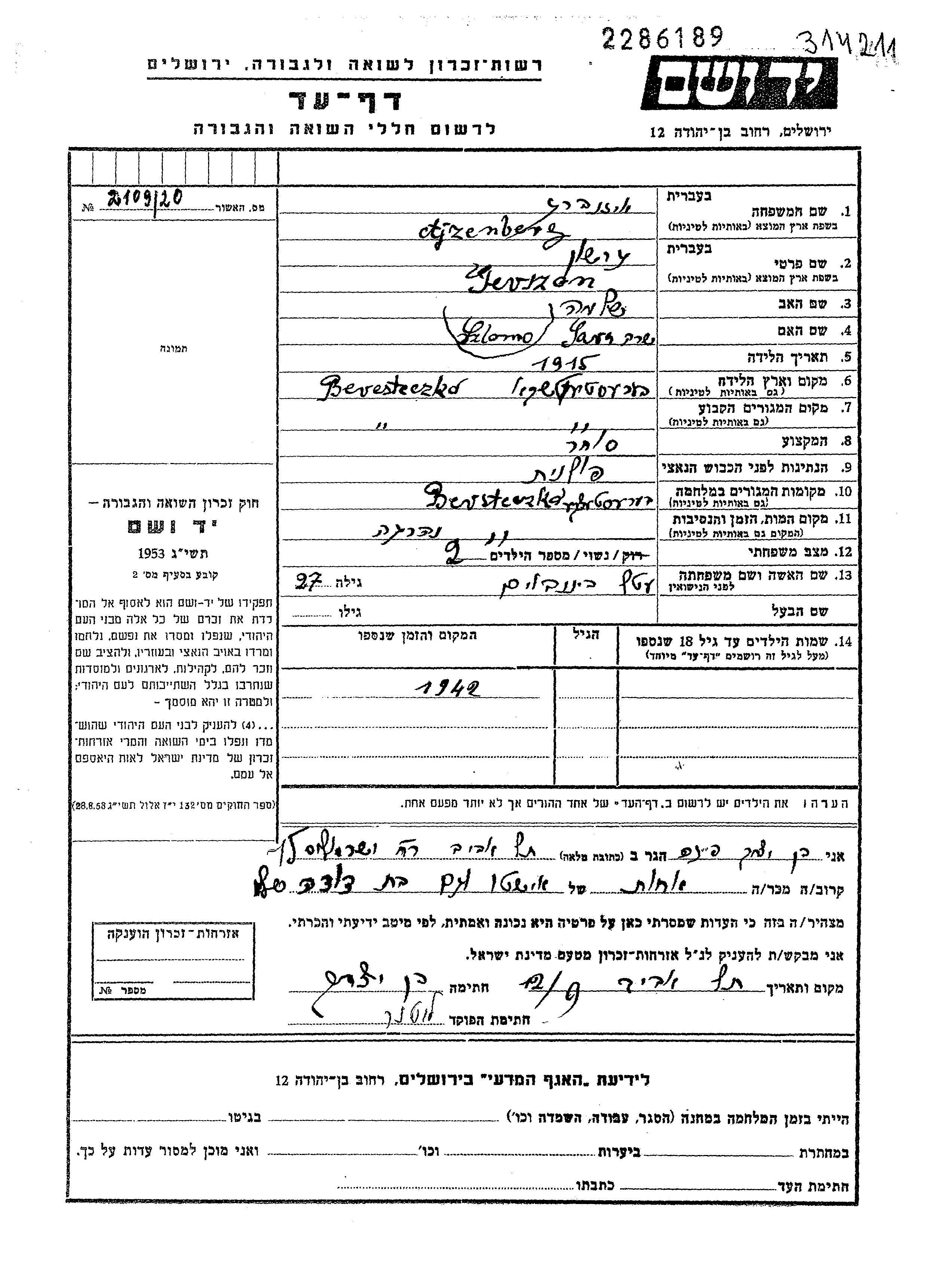 Ajzenberg Gerszon 1915 Beresteczko, Poland Page of Testimony