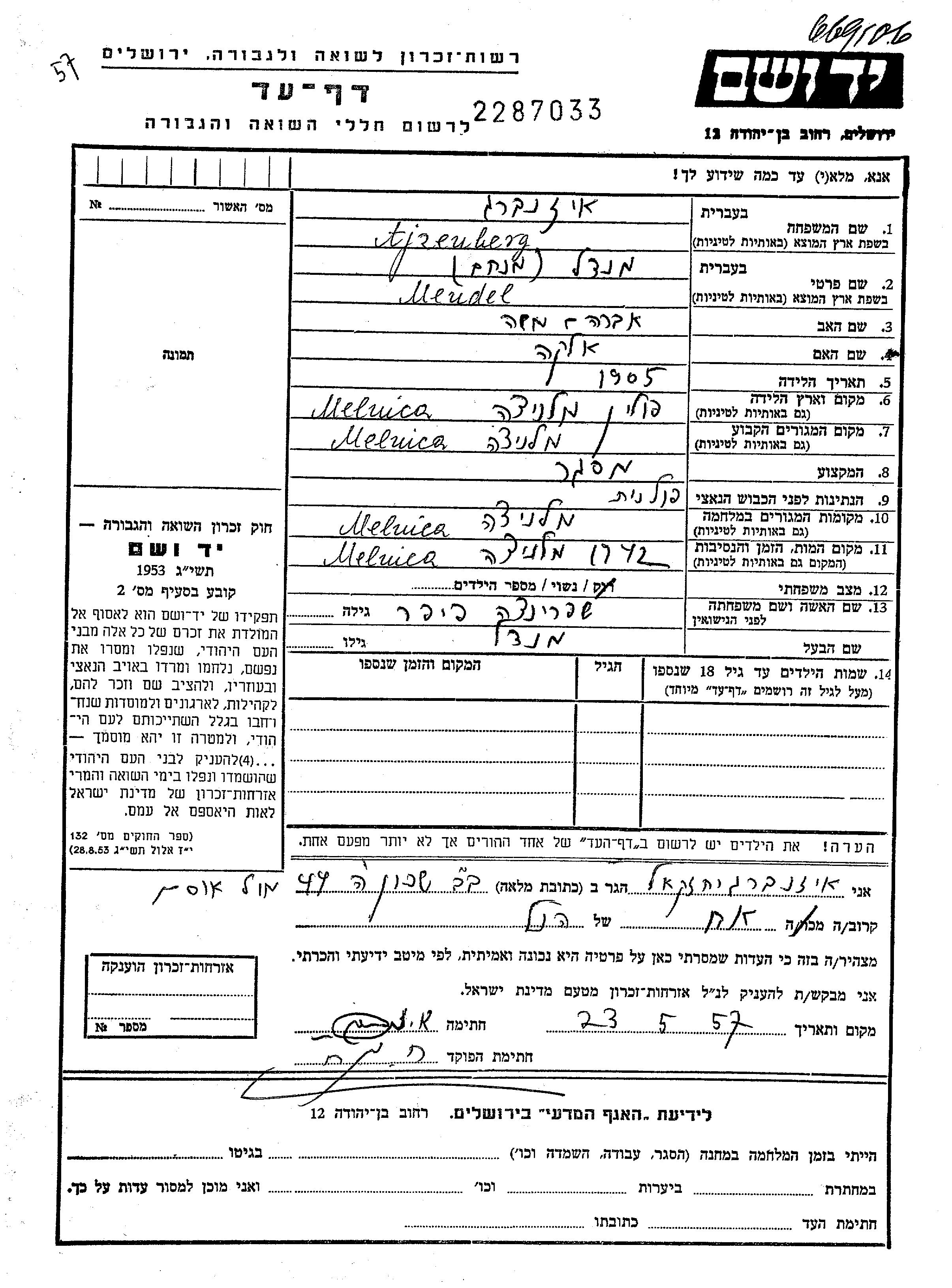 Mendel Menakhem Ajzenberg was born in Mielnica, Poland, 1905 to Abraham Moshe and Elka. He was a metalworker and married to Shprintza. Prior to WWII he lived in Mielnica, Poland. During the war he was in Mielnica, Poland. Mendel Menakhem was murdered in the Shoah. Place of death: Mielnica, Poland, 1942.