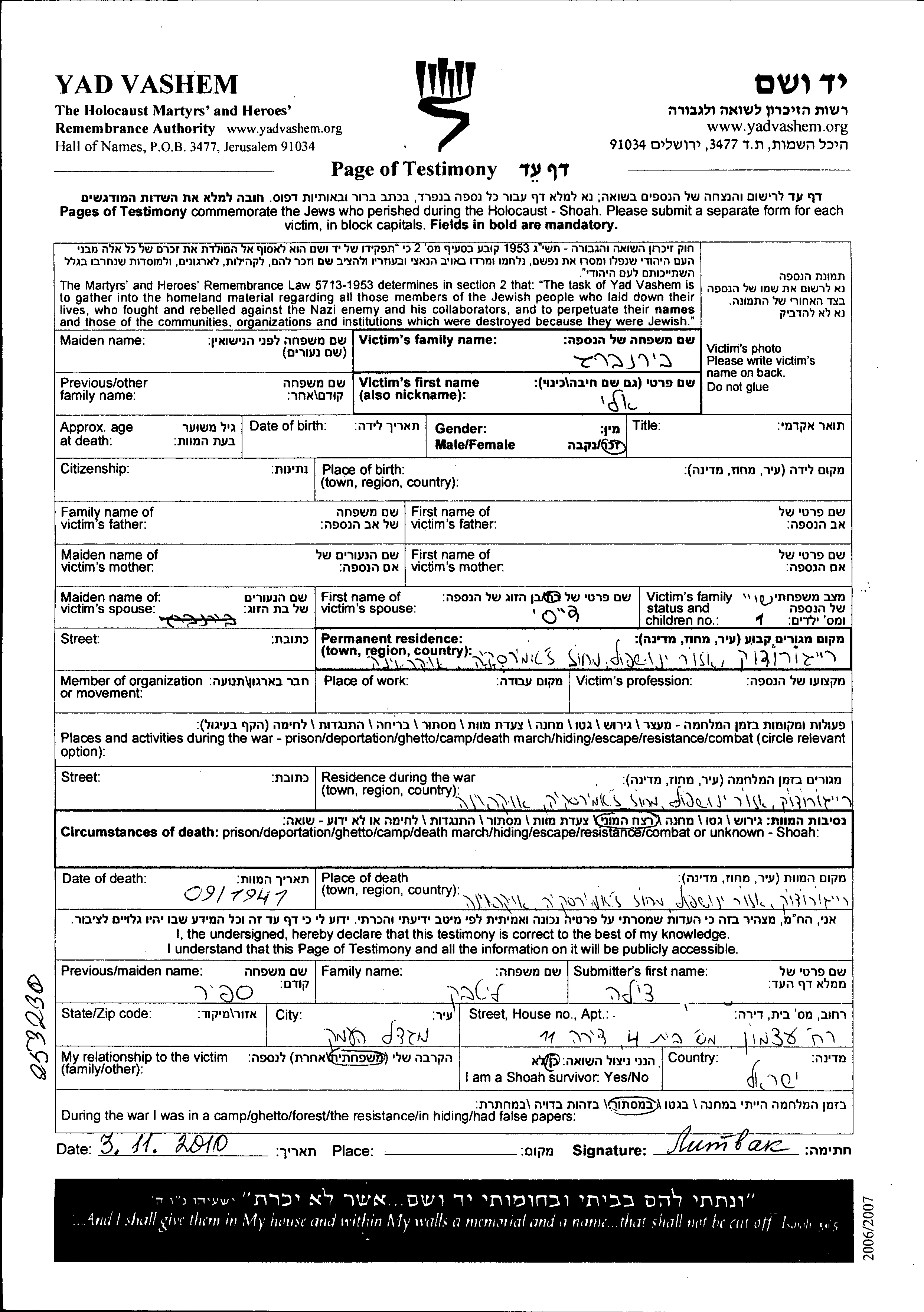 Eli Birnberg. He was married to Deisi. Prior to WWII he lived in Raygorodok, Ukraine (USSR). During the war he was in Raygorodok, Ukraine (USSR). Eli was murdered in the Shoah. Place of death: Raygorodok, Ukraine (USSR), 09/1941.