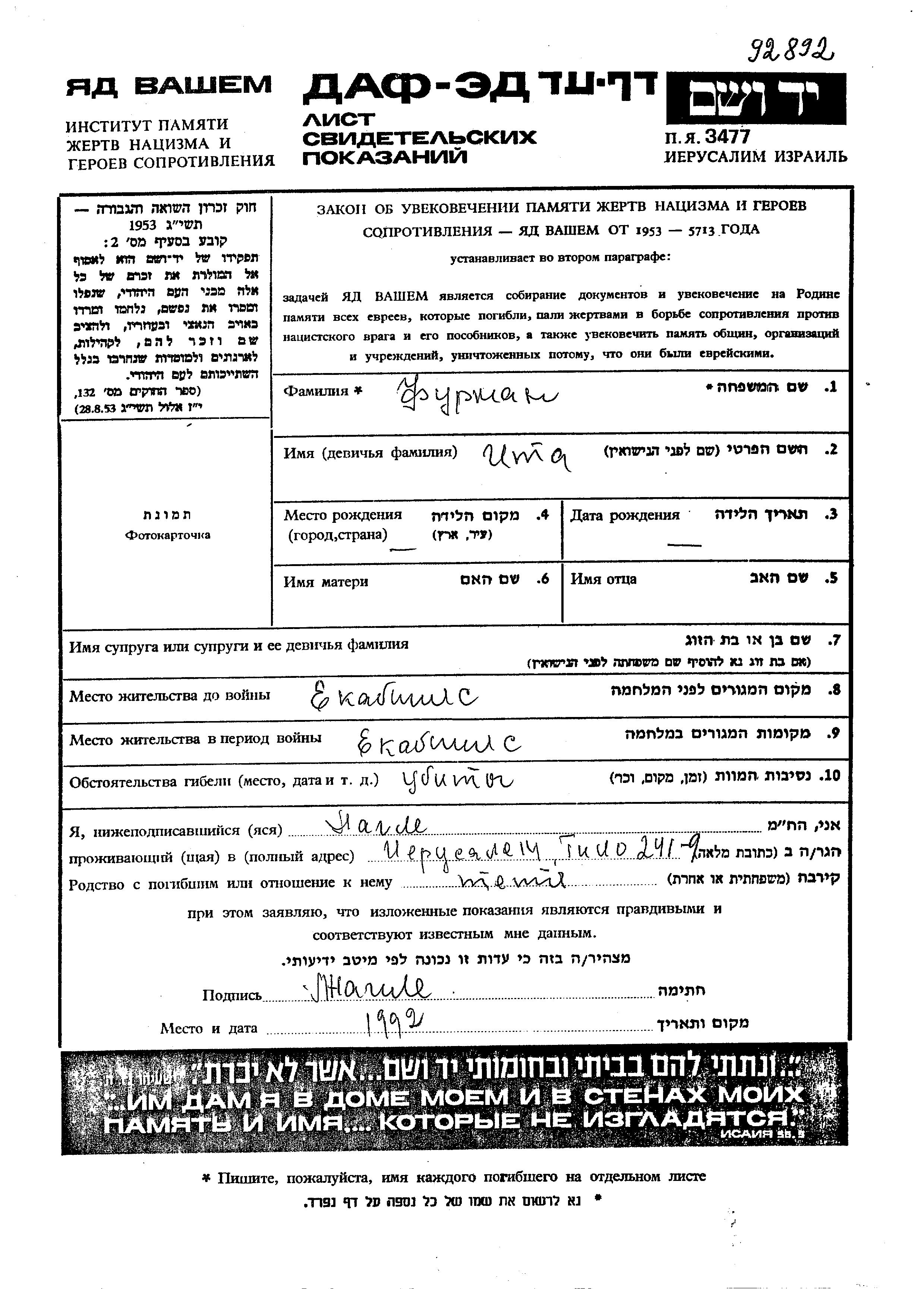 Ita Furman was born in Jekabpils, Latvia. She was married. Prior to WWII she lived in Jekabpils, Latvia. During the war she was in Jekabpils, Latvia. Ita was murdered in the Shoah. Place of death: Latvia.