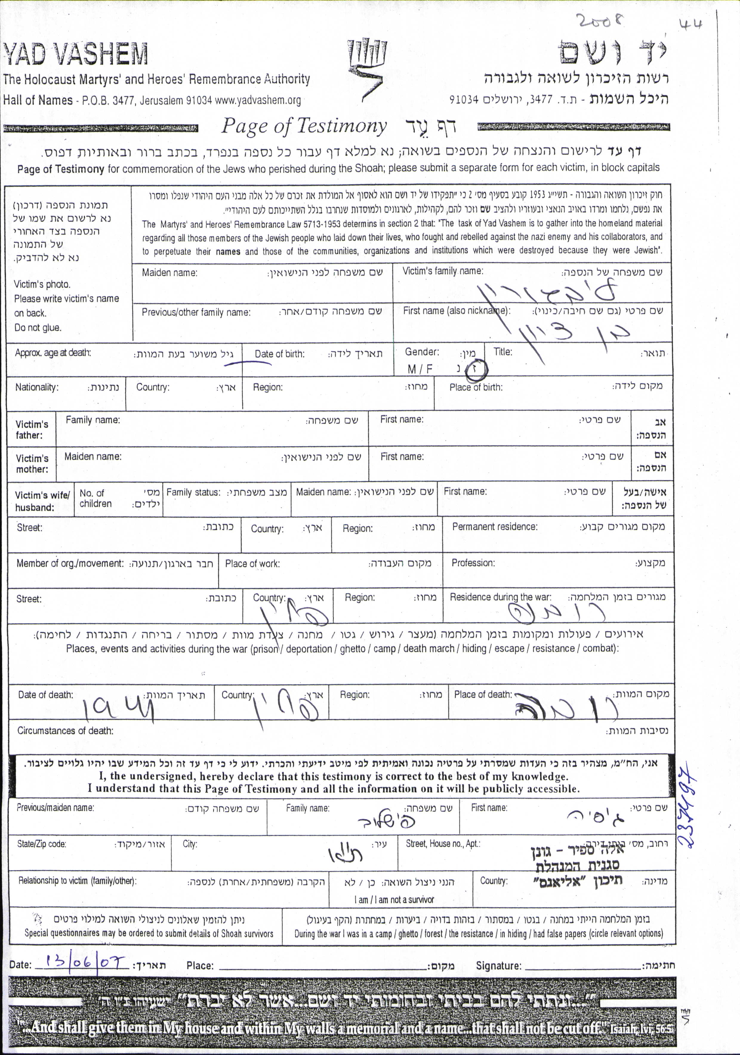 Yad Vashem - Pages of Testimony Names Memorial Collection