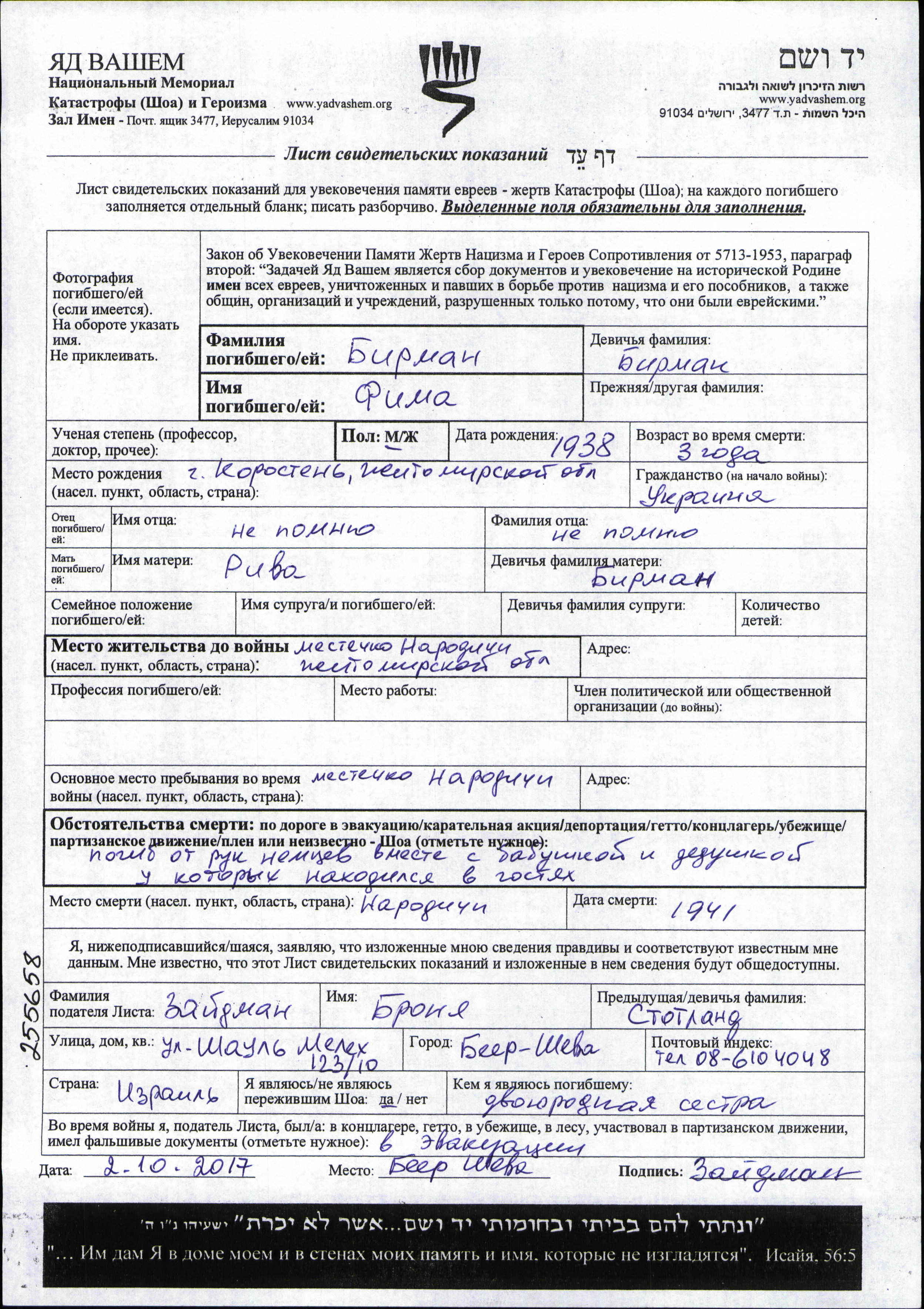 During the Shoah, Jews were murdered in a variety of ways, among them gassing, shooting, burning, drowning or burial alive, exhaustion through forced labor, starvation, epidemic diseases, deprivation of medical care and minimal hygienic conditions, and more. Some Jews took their own lives in order to escape arrest and further persecution, or to end their hopeless, relentless suffering.