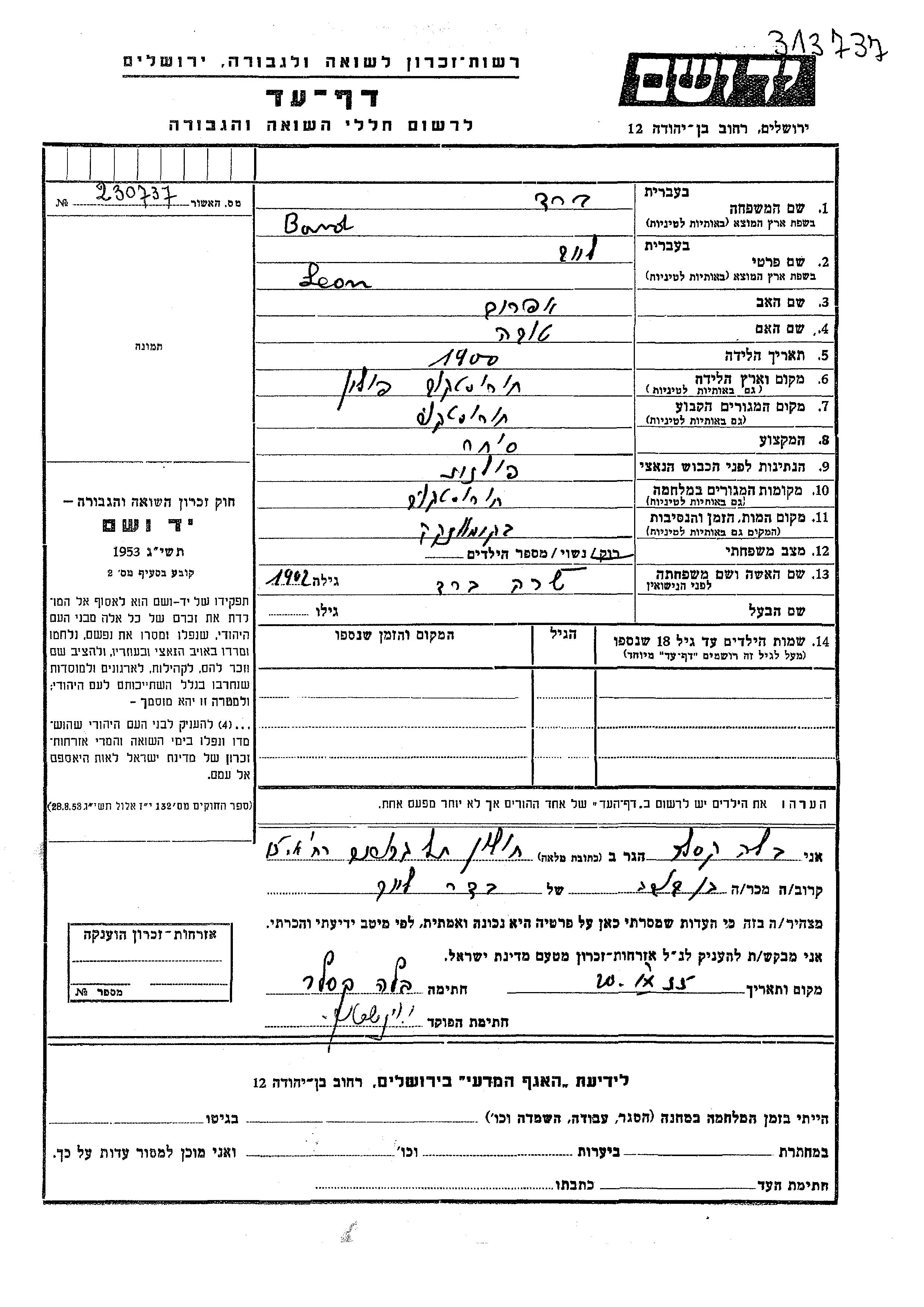 Yad Vashem - Pages of Testimony Names Memorial Collection