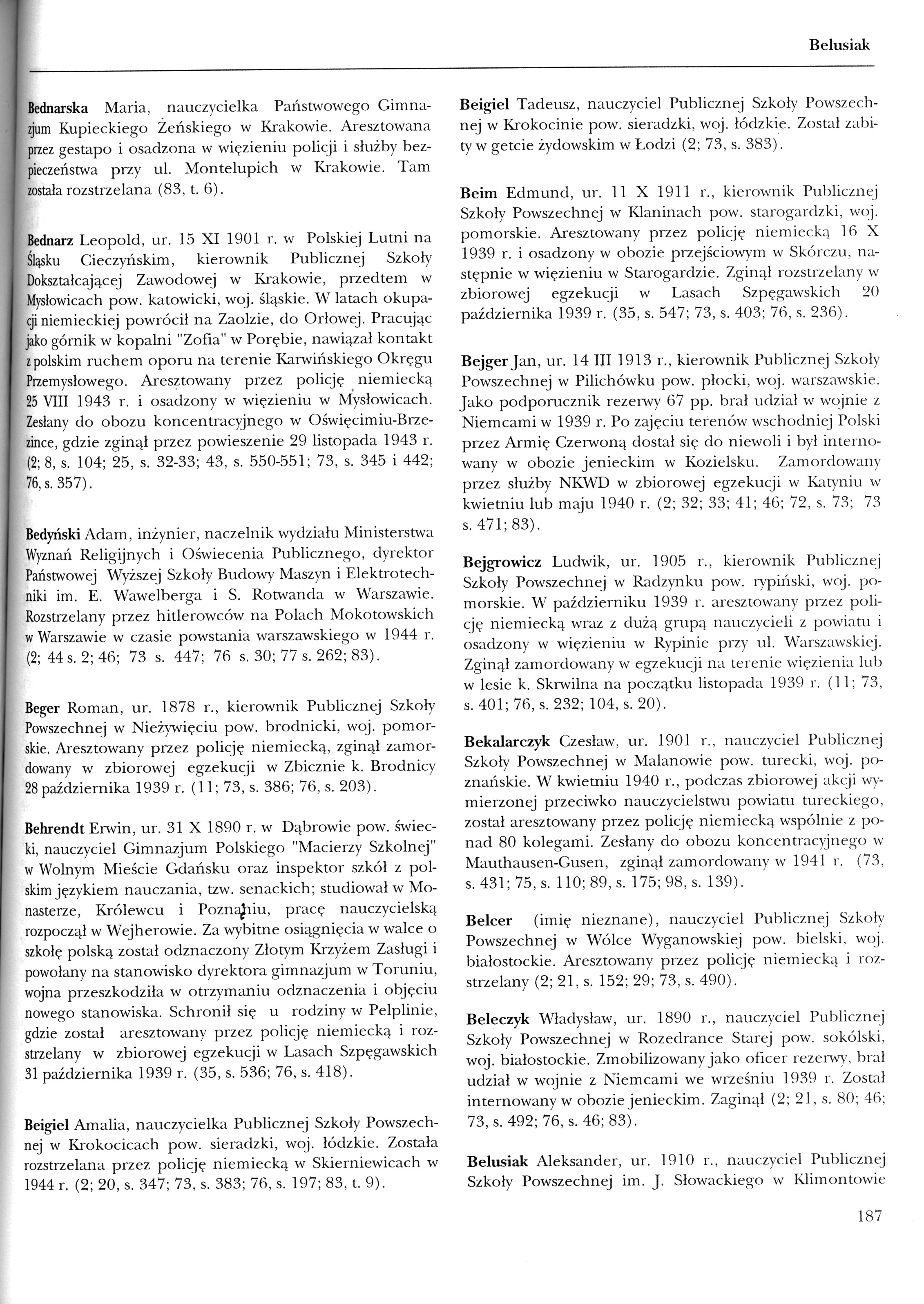Beigiel Tadeusz Poland List of persecuted persons