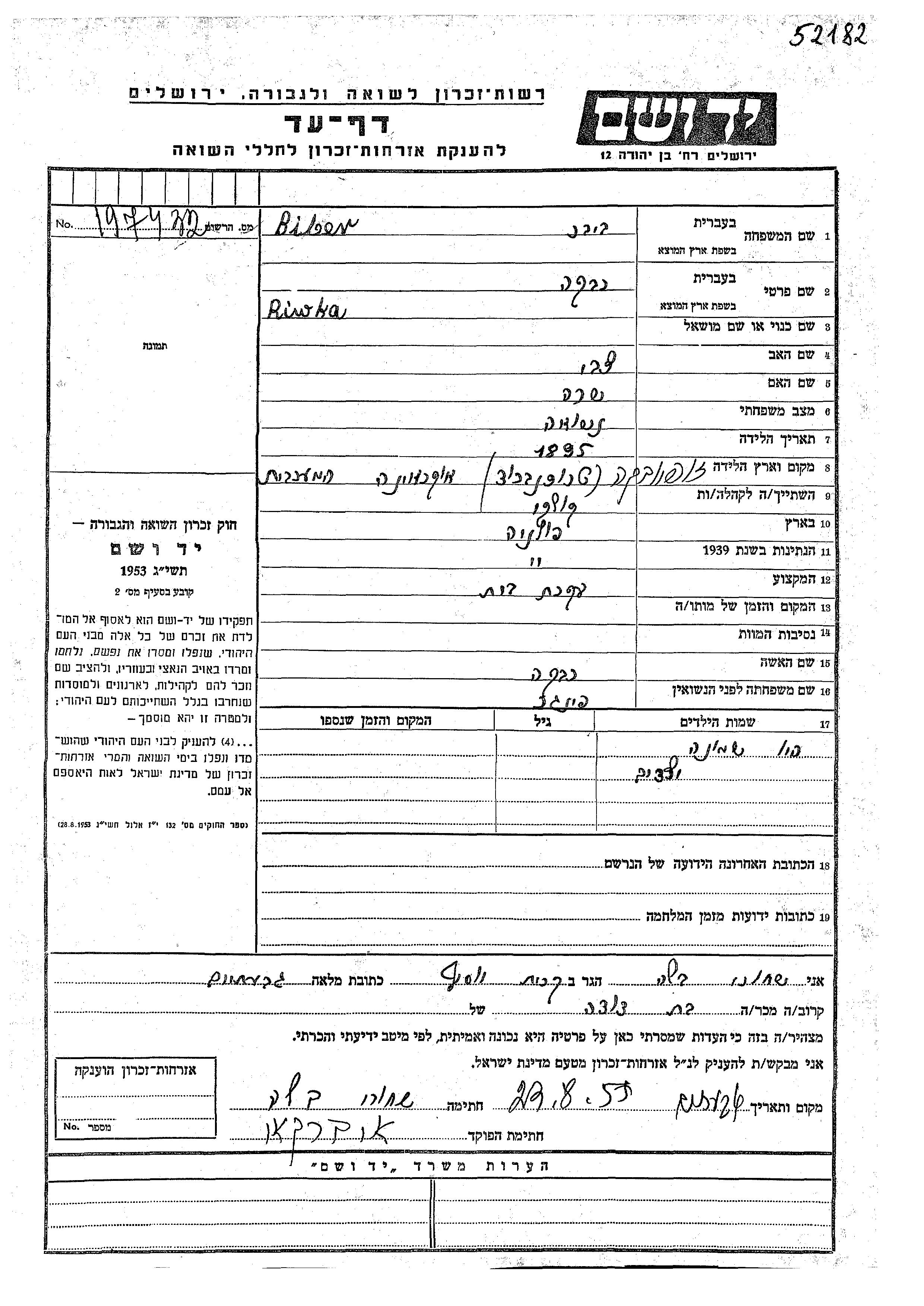 Yad Vashem - Pages of Testimony Names Memorial Collection