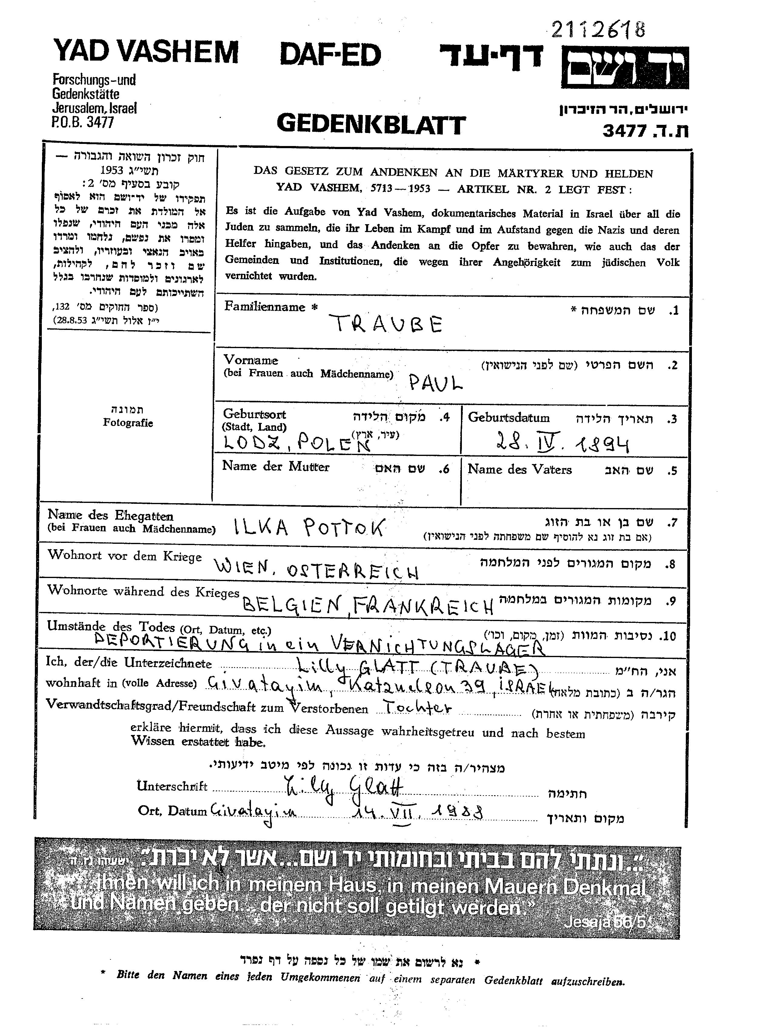 Search by last name of the submitter of the Page of Testimony, including diminutives or nicknames