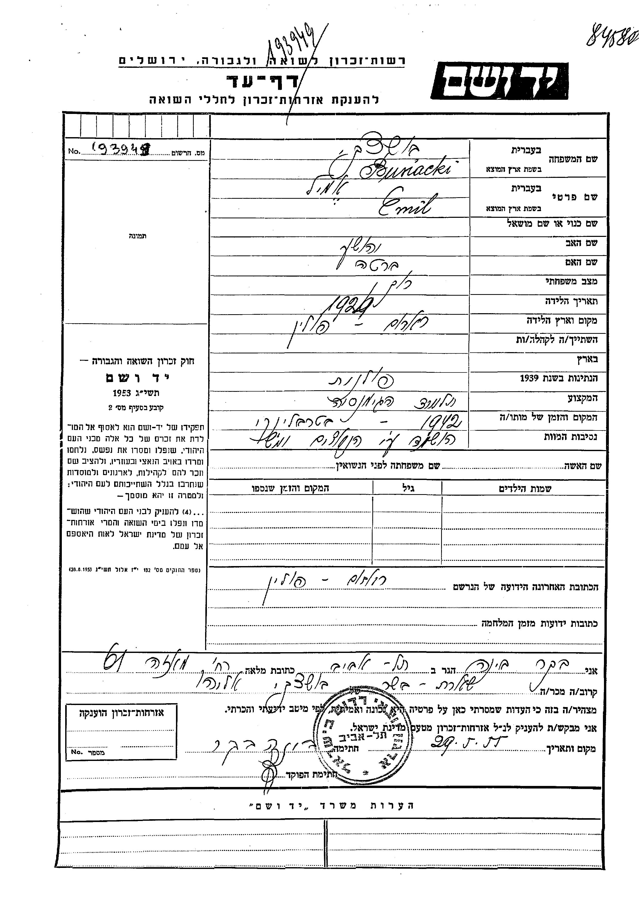 Buszacki Emil 1929 Radom, Poland Page of Testimony