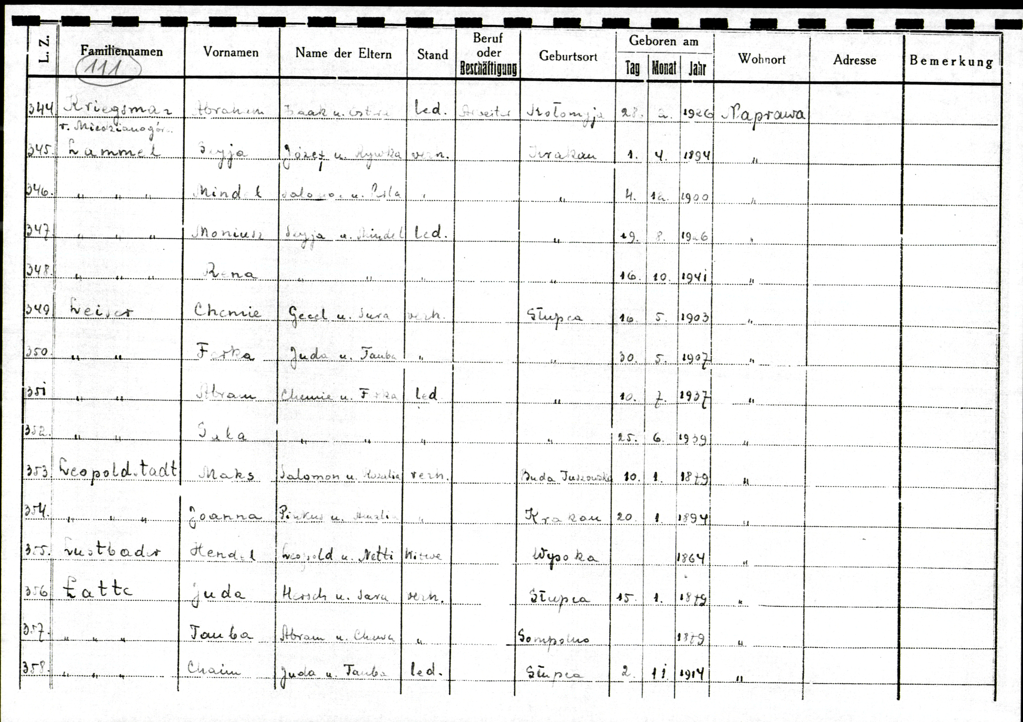 Lustbader Hendel 1864 Naprawa, Poland List of persecuted persons