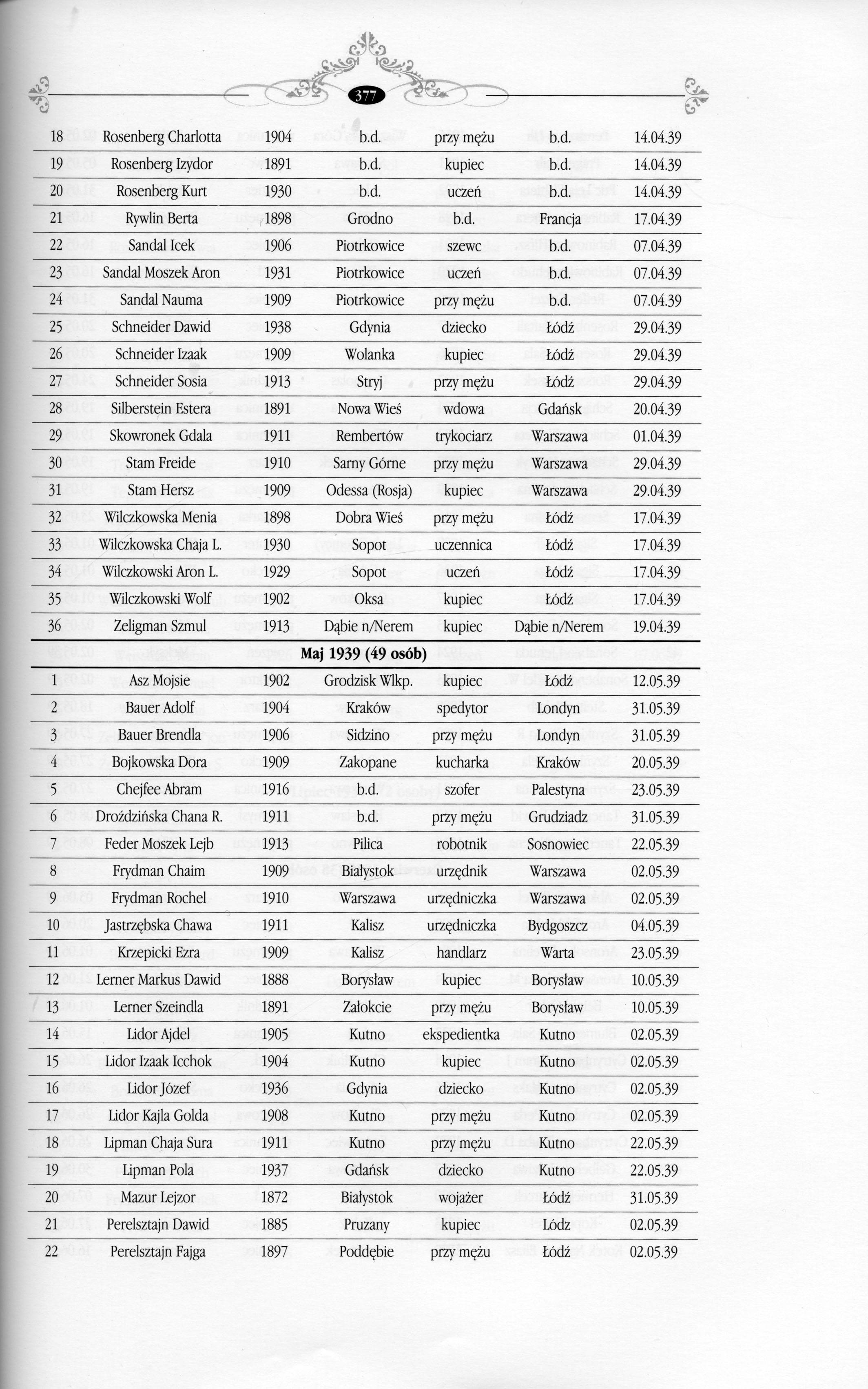 | Lidor | Kajla Gołda | 1908 | Gdynia, Poland | List of persecuted persons |