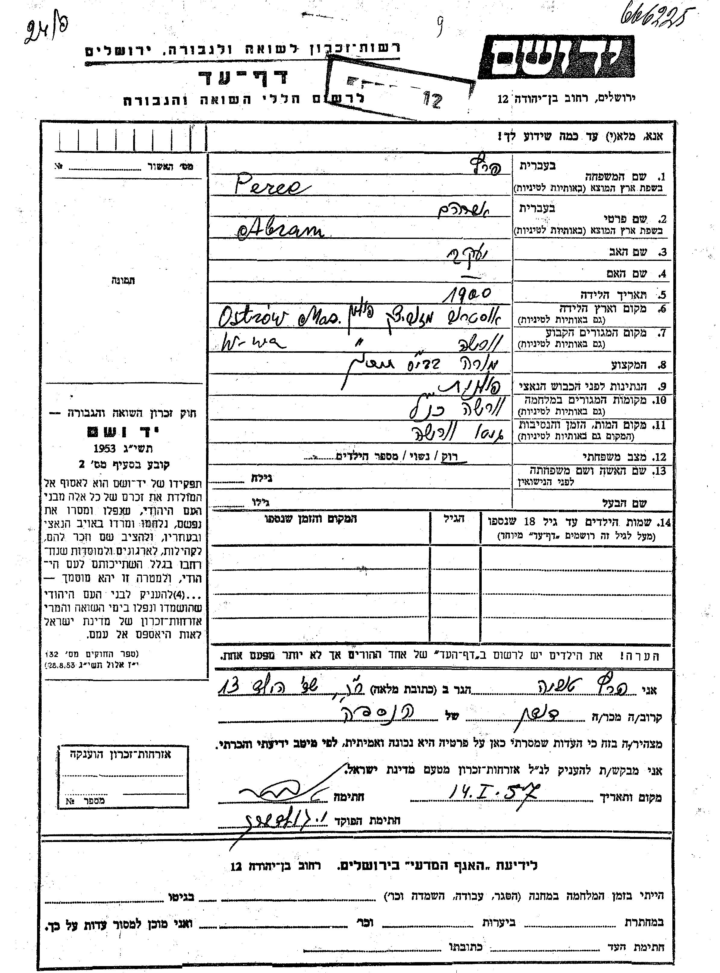 Search by last name of the submitter of the Page of Testimony, including diminutives or nicknames