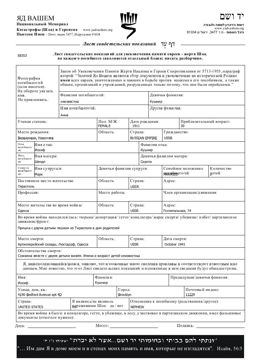 Yad Vashem - Pages of Testimony Names Memorial Collection