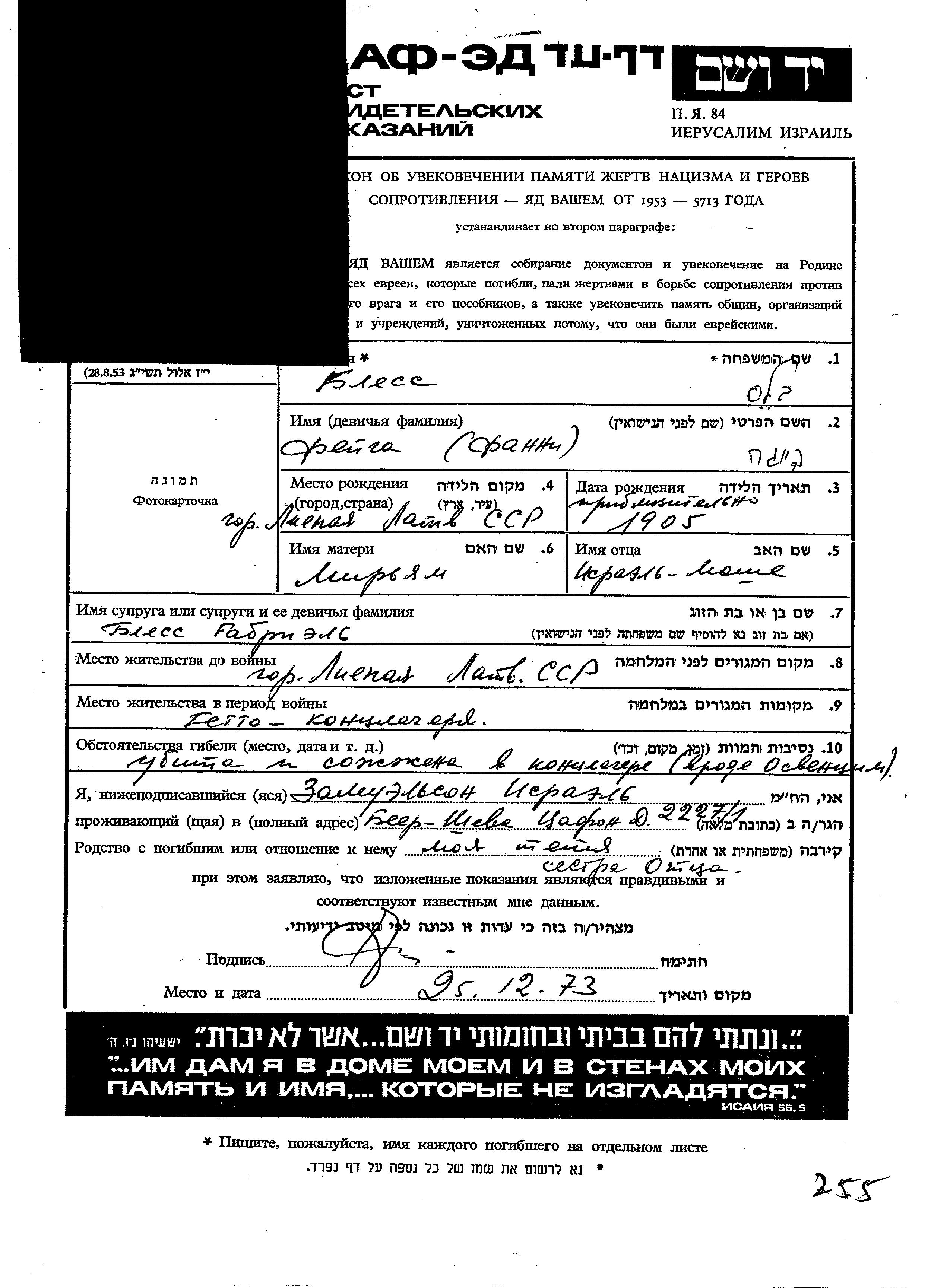 Bless | Fanni Feiga | 1905 | Liepaja, Latvia | Page of Testimony |