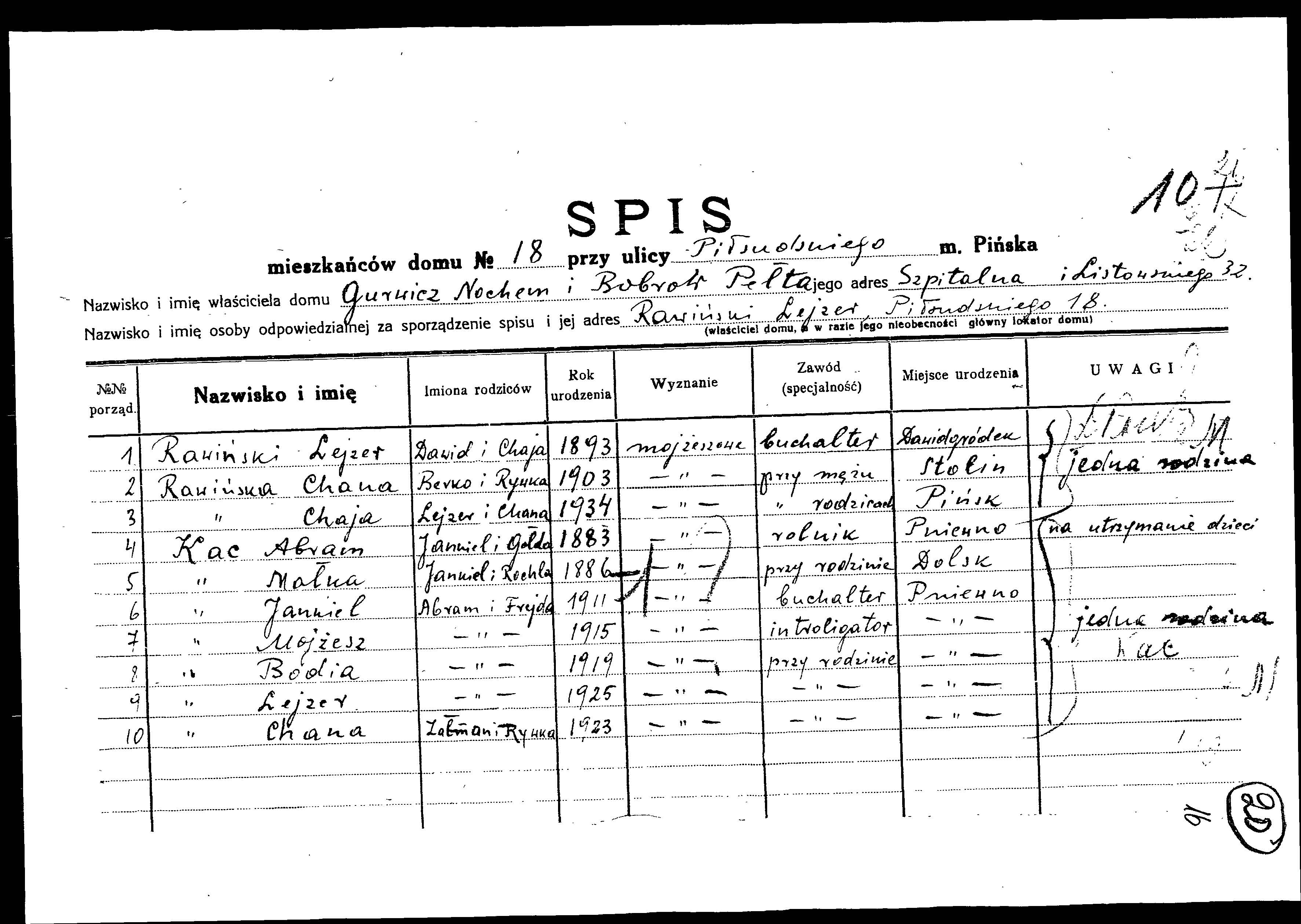 Kac Malka 1886 Pinsk, Poland List of persecuted persons