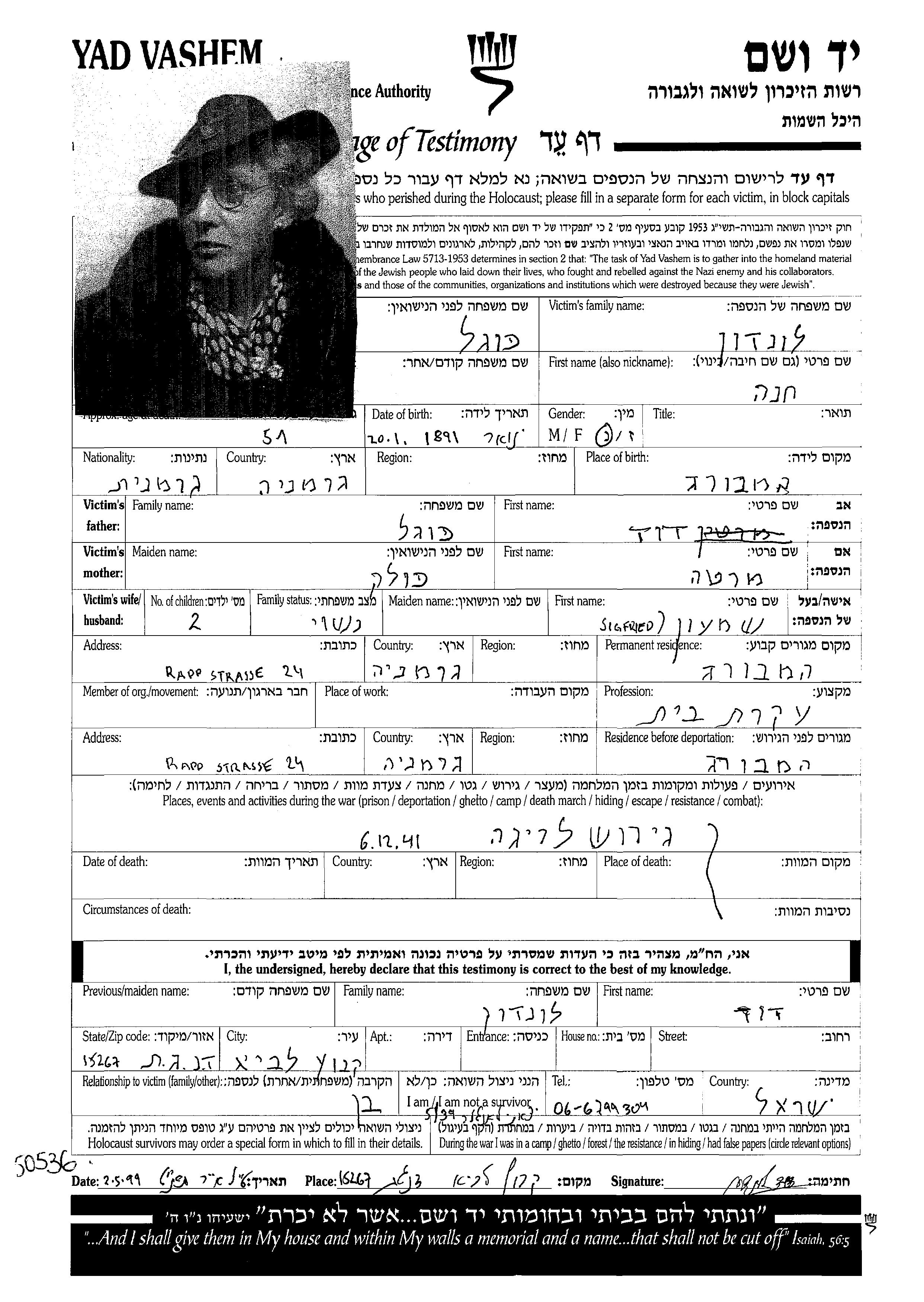 Search by last name of the submitter of the Page of Testimony, including diminutives or nicknames