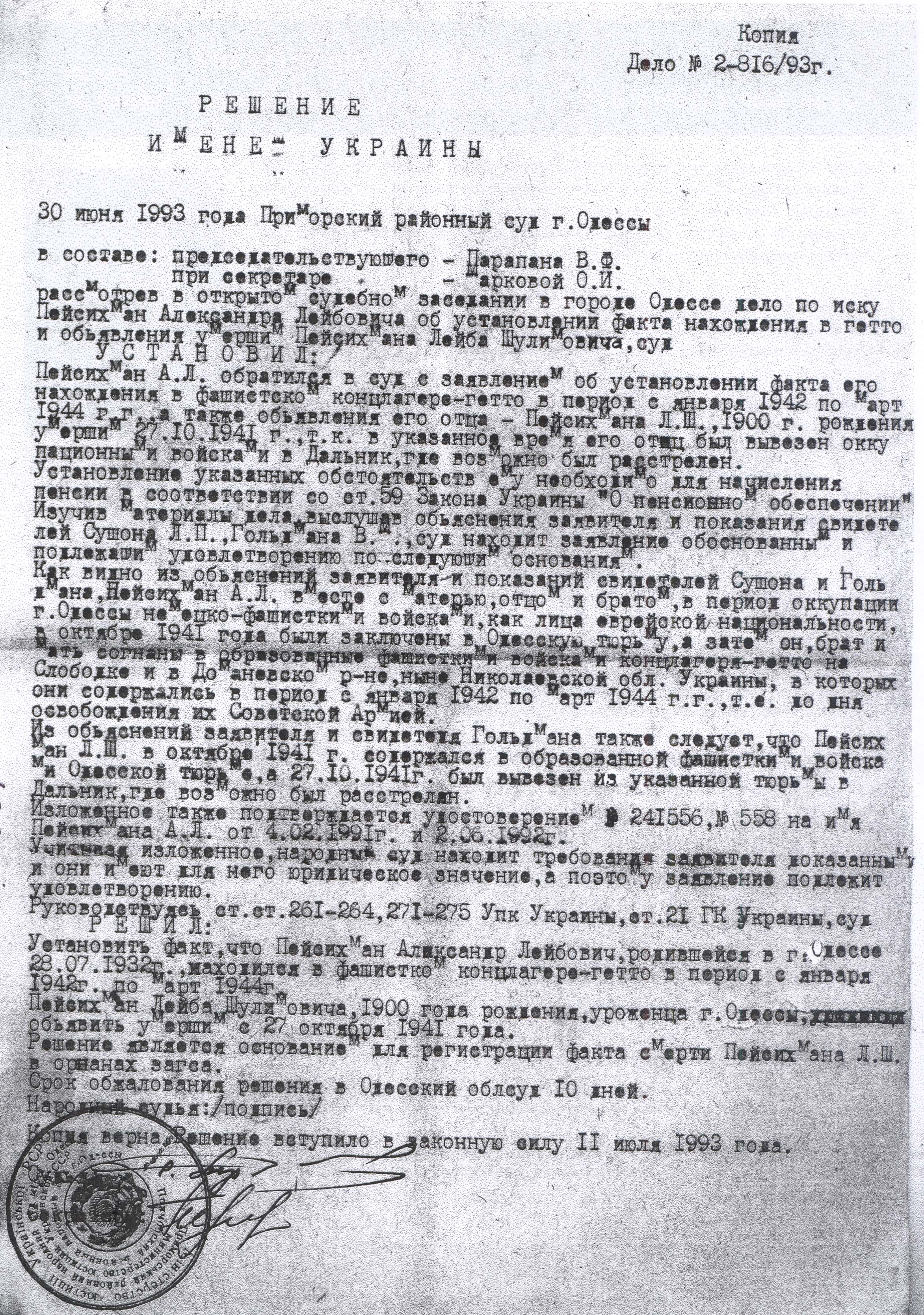 Leib Peisikhman was born in Odessa, Ukraine (USSR), 1900. Prior to WWII he lived in Odessa, Ukraine (USSR).