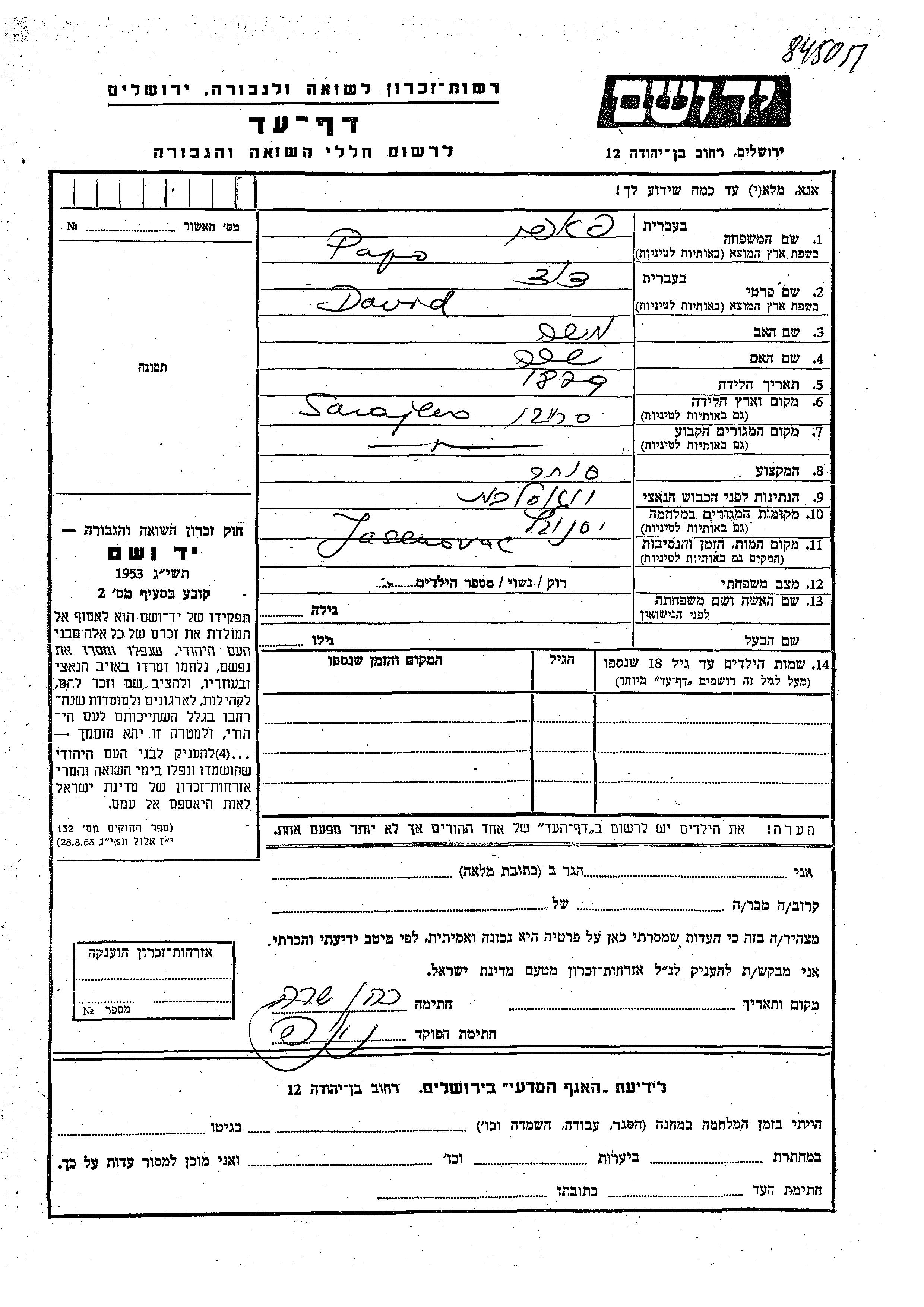 Papo David 1879 Sarajevo, Yugoslavia Page of Testimony