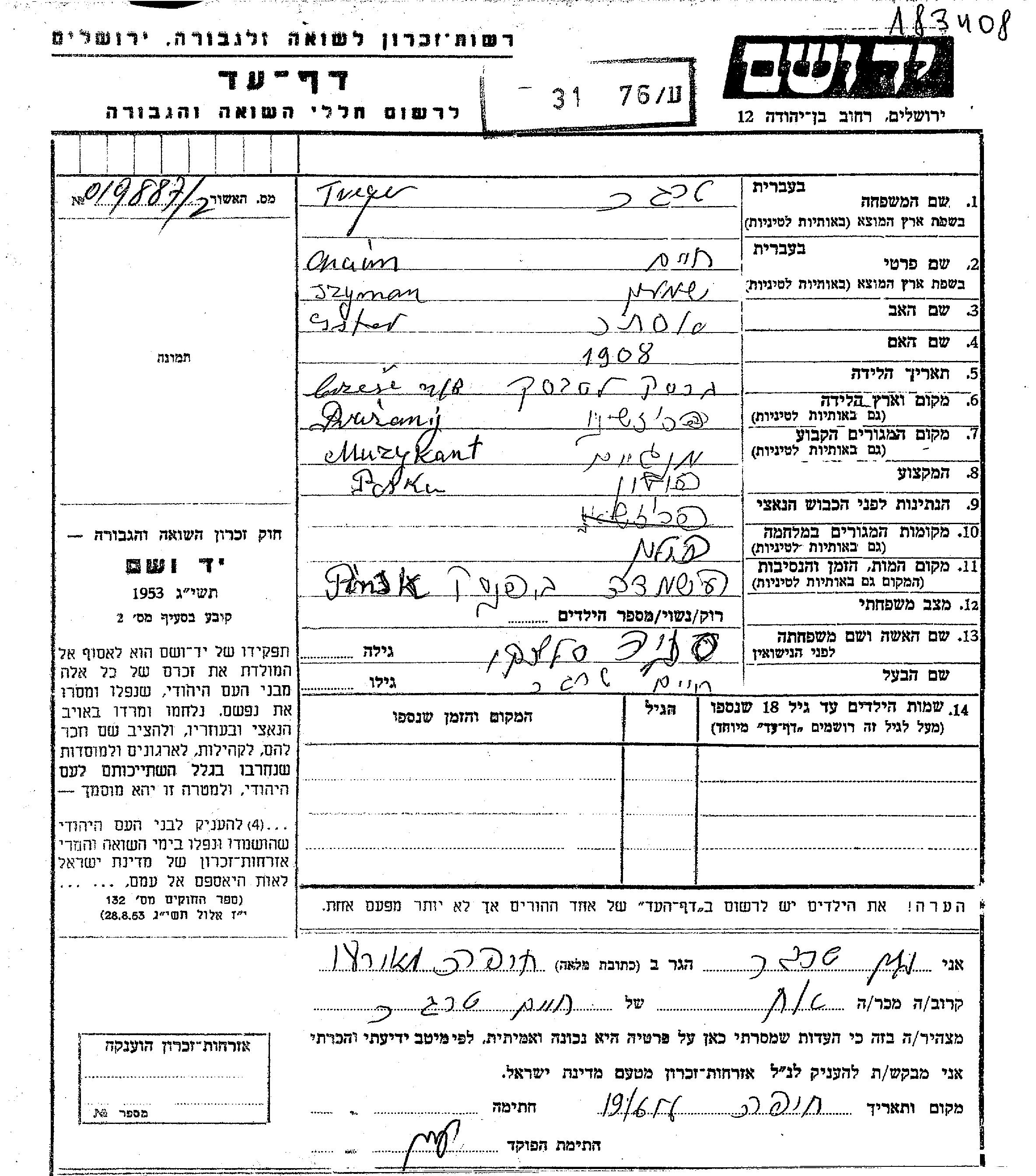 Yad Vashem - Pages of Testimony Names Memorial Collection