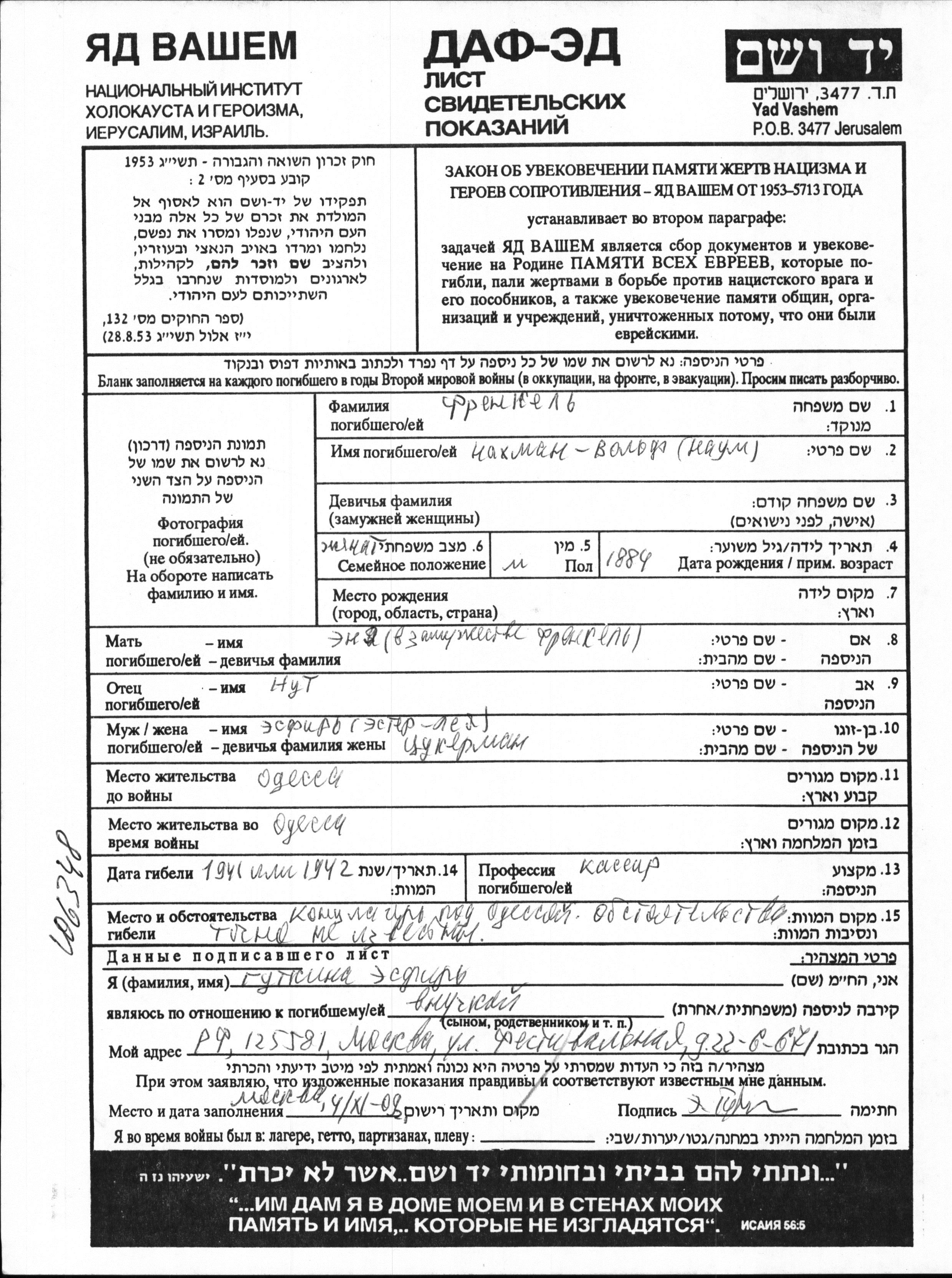 Search by last name of the submitter of the Page of Testimony, including diminutives or nicknames