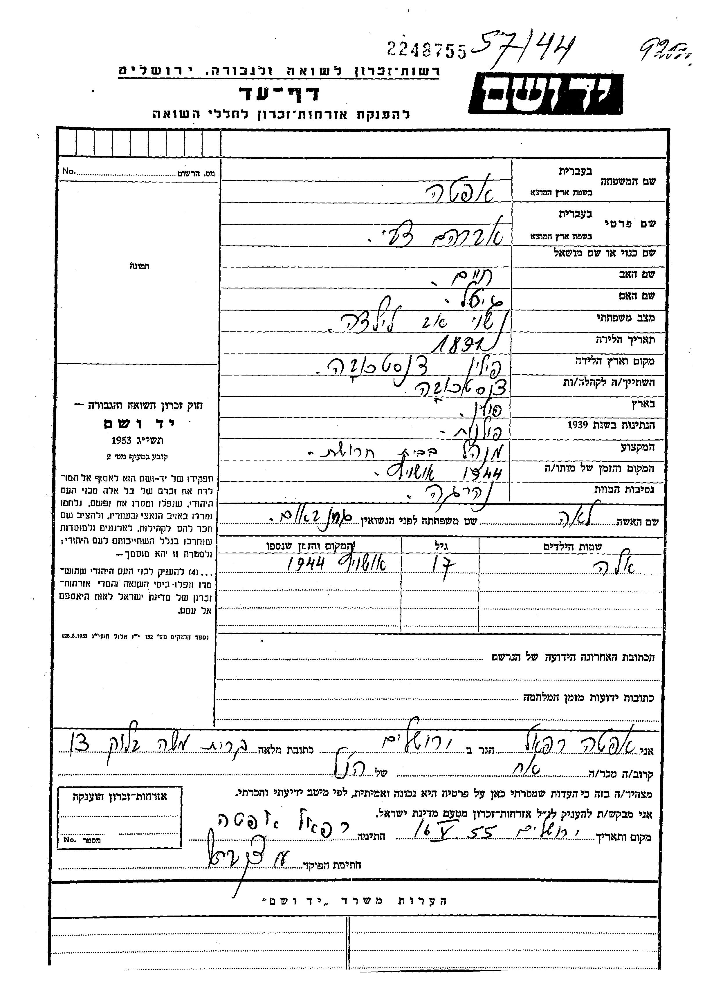 Yad Vashem - Pages of Testimony Names Memorial Collection