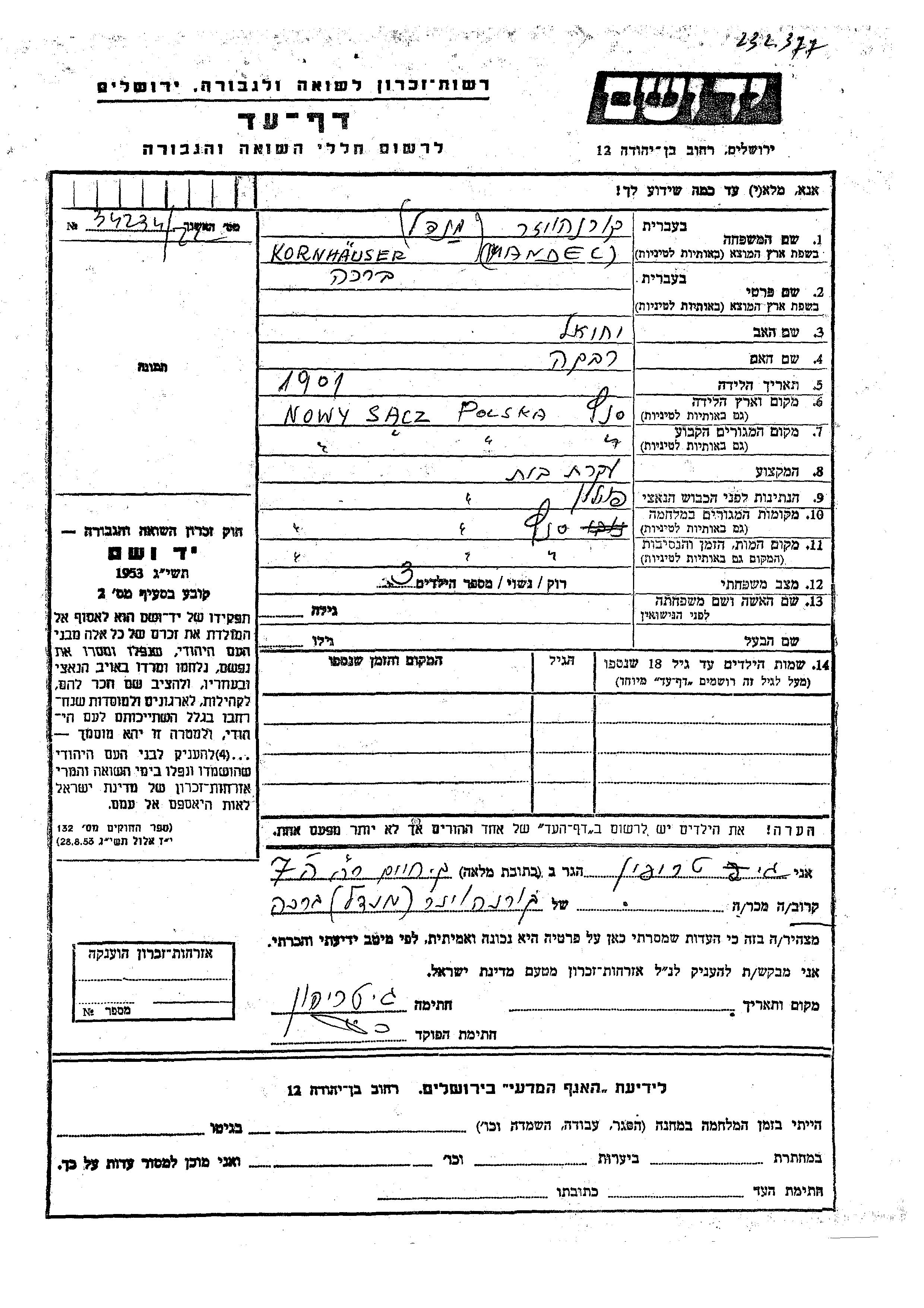 Brakha Kornhauser nee Mandel was born in Nowy Sącz, Poland, 1901 to Yekhiel and Rivka. She was a housewife. Prior to WWII she lived in Nowy Sącz, Poland. During the war she was in Nowy Sącz, Poland. Brakha was murdered in the Shoah. Place of death: Nowy Sącz, Poland.