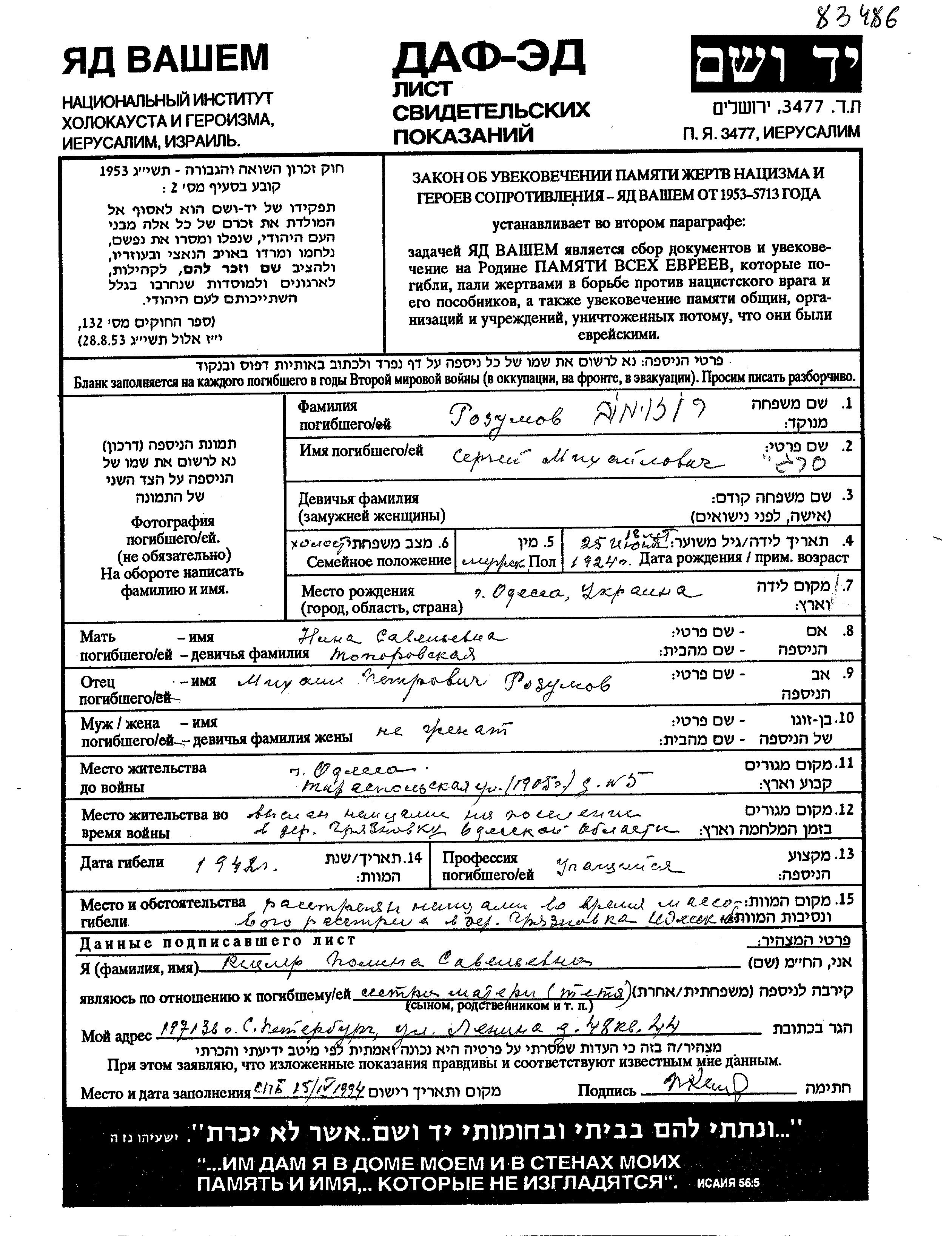 Rozumov Sergei 1924 Odessa, Ukraine (USSR) Page of Testimony