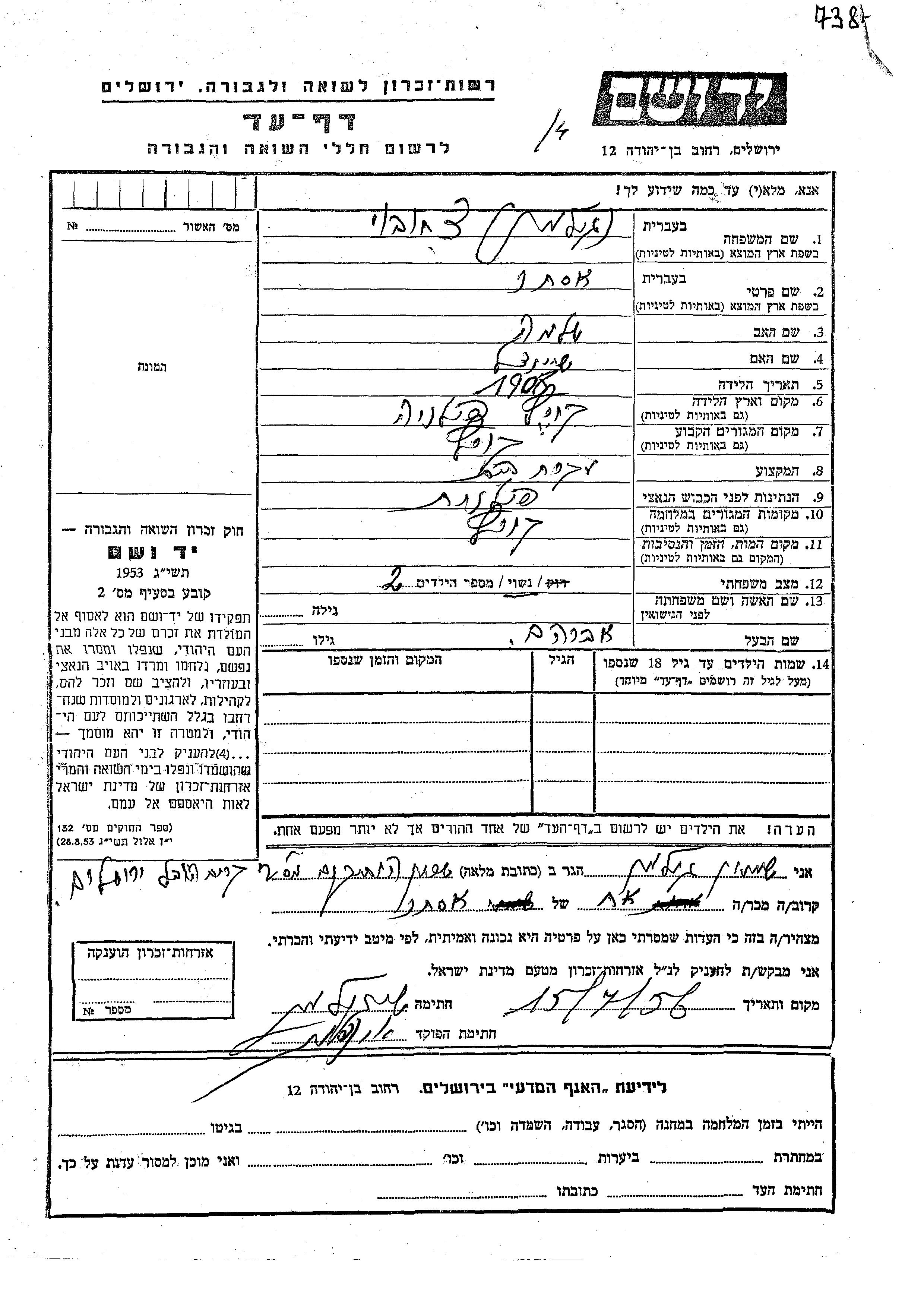| Tzekhovoi | Ester | 1908 | Korec, Poland | Page of Testimony |