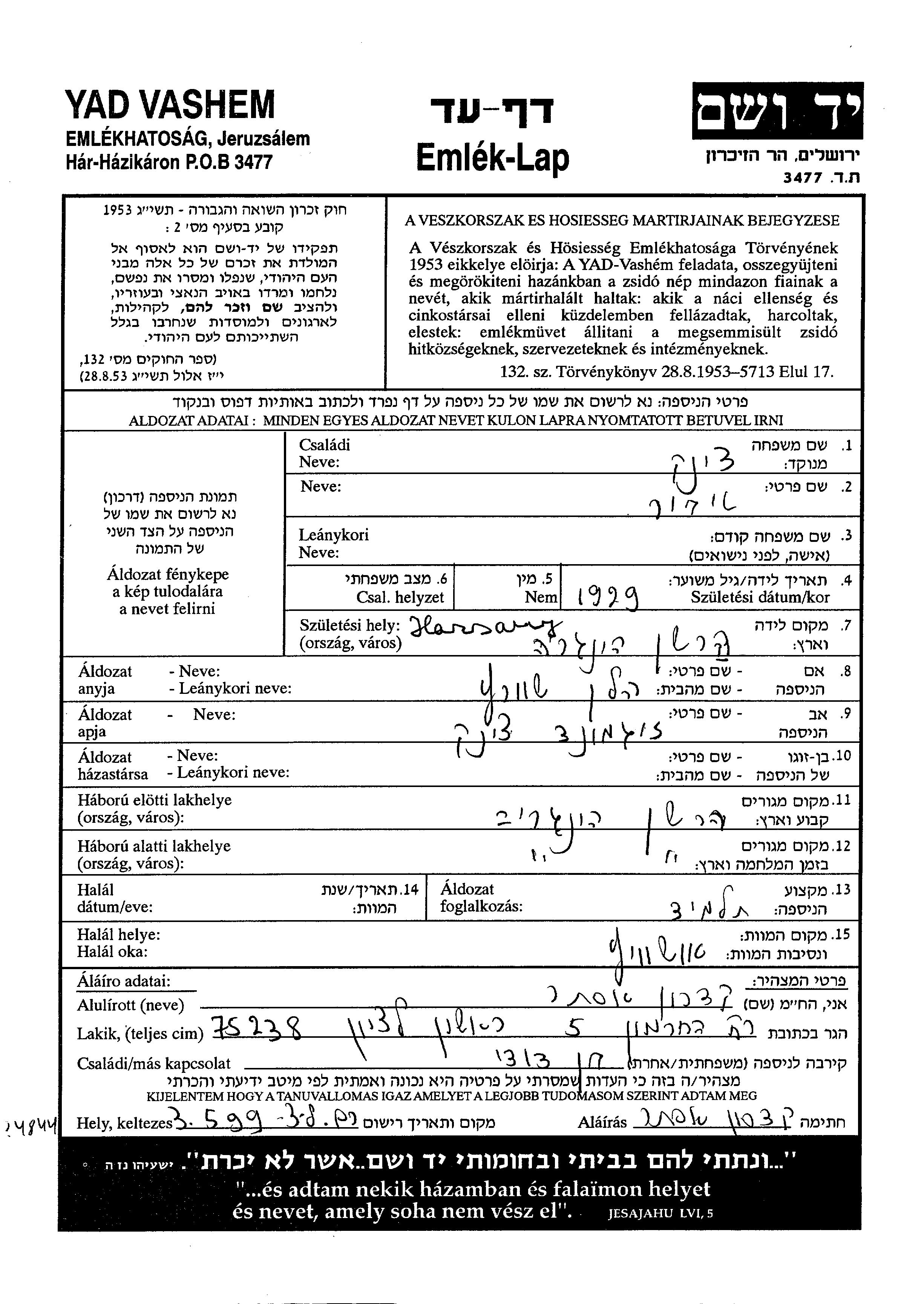Yad Vashem - Pages of Testimony Names Memorial Collection