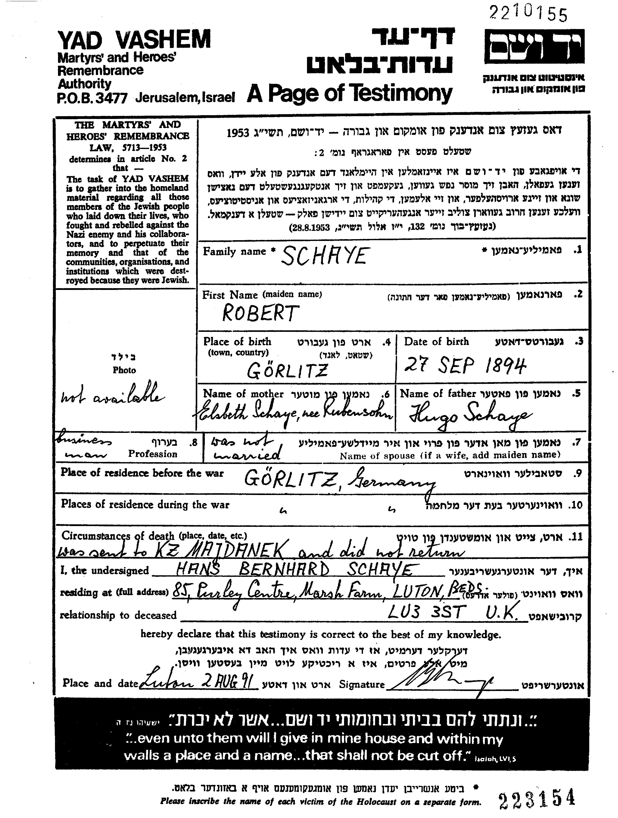 Search by last name of the submitter of the Page of Testimony, including diminutives or nicknames