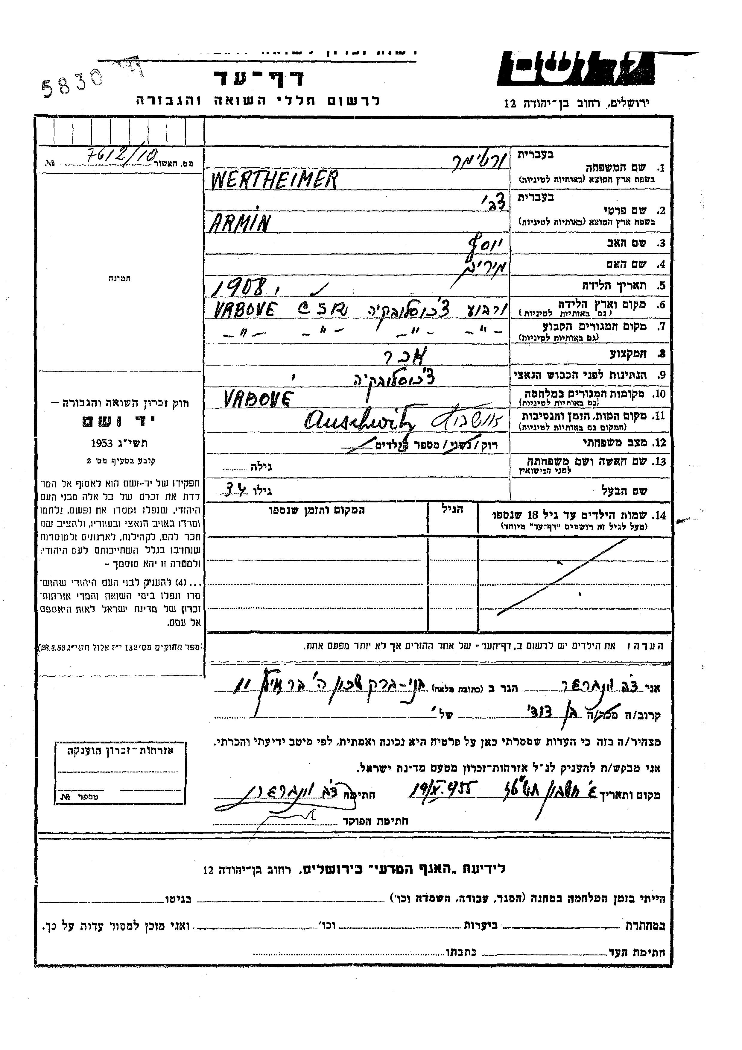 Search by name of Prewar permanent residence, Town, Village, District, Region or Country.