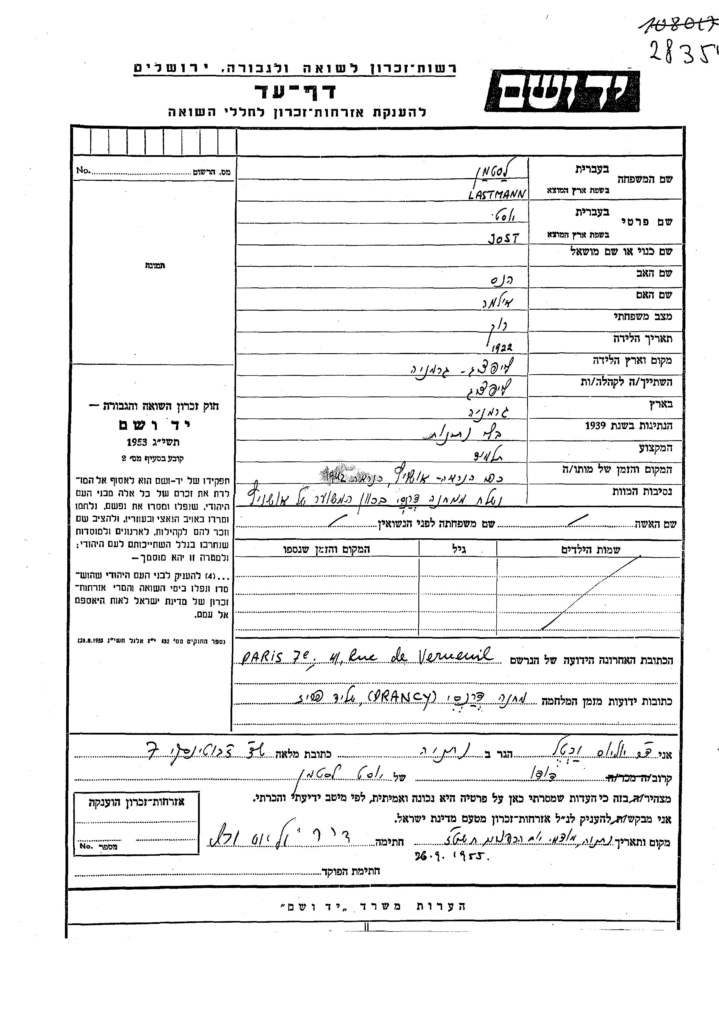 Search by name of Prewar permanent residence, Town, Village, District, Region or Country.
