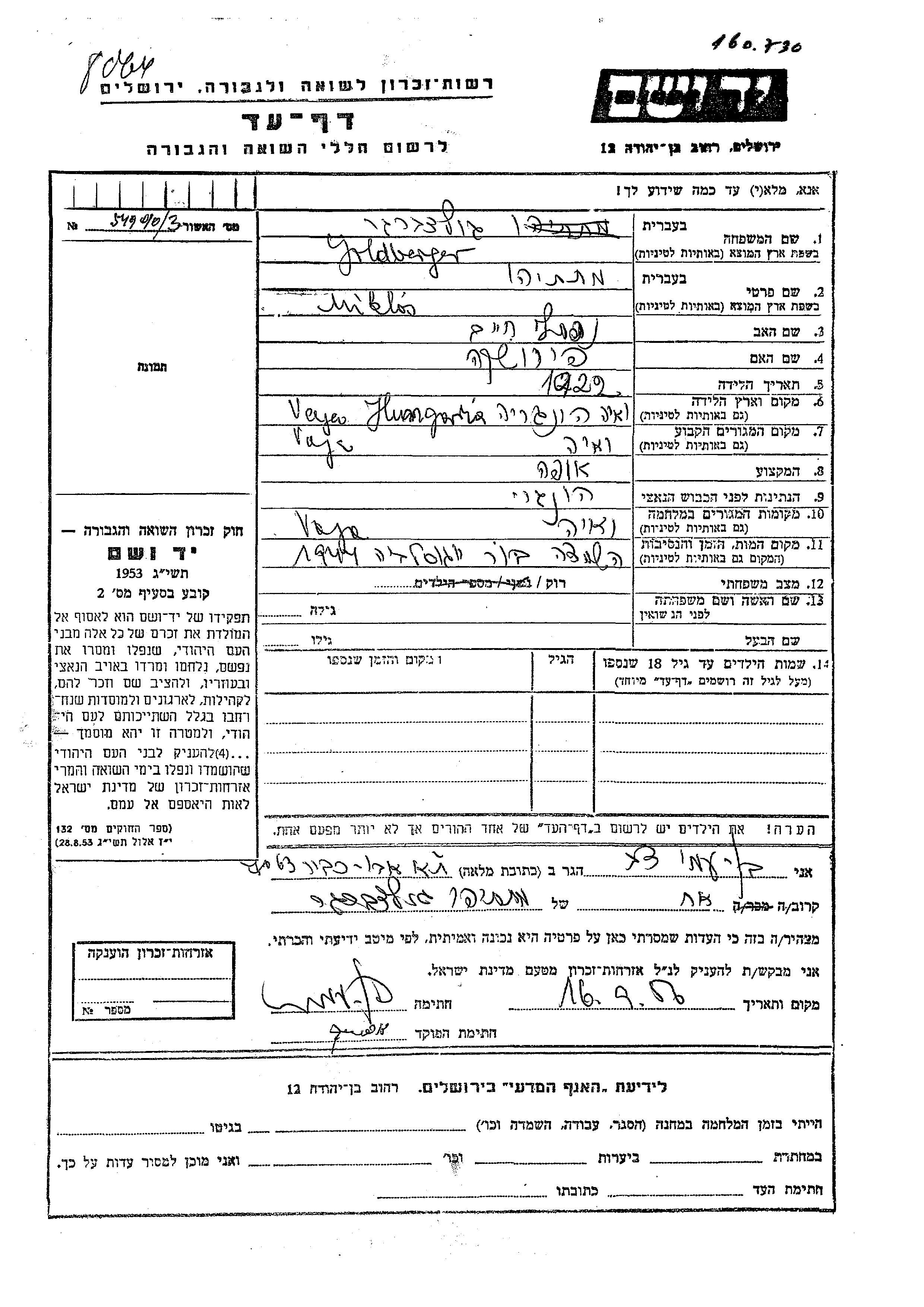 Yad Vashem - Pages of Testimony Names Memorial Collection