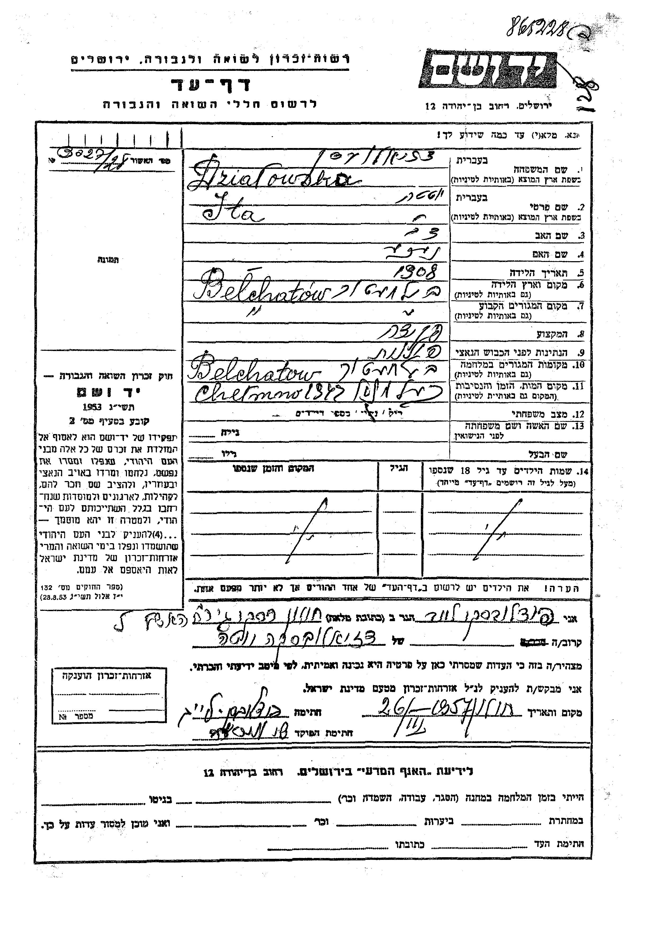 Yad Vashem - Pages of Testimony Names Memorial Collection