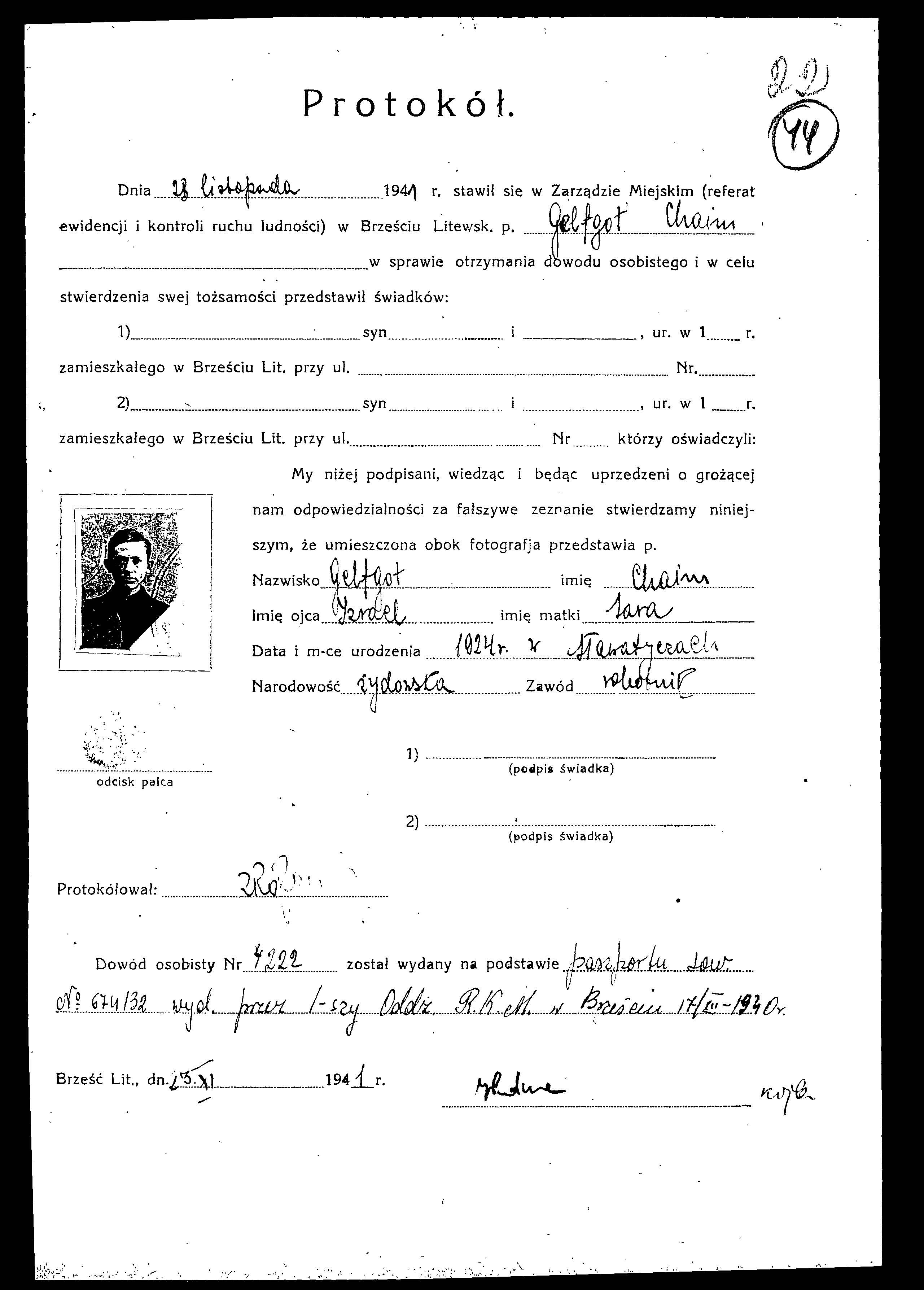 Forms containing personal details completed by Jews in the Brest Litovsk Ghetto in order to receive identity cards, 1941-1942; the letter G